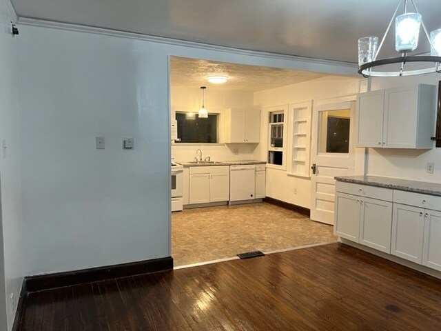 Recently remodeled house with so many nice features: hardwood floors, new kitchen, central air, formal dining room, large living area, bonus room, full basement, central air, fenced in back yard, detached garage with garage opener, 3 large bedrooms upstairs with a full bathroom. Tenant pays for all utilities. One year lease including fridge, dishwasher, microwave and stove. No security deposit, non-refundable move in fee instead of $700. Lease breakage fee applies. Application fee is non-refundable. Showings/tours will only be scheduled for approved applicants. No Section 8. Beautiful home with hardwood floors, open updated kitchen with diswasher, large living room and bonus room, full basement, fenced in back yard, central air, mud room in back and a detached garage.