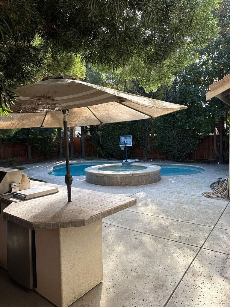 Look no more this home has an awesome floor plan big entryway, formal living room, dining room, office or den downstairs family room with fireplace, great equipped kitchen and breakfast nook area double ovens flat top range microwave garbage disposal double sinks three full bathrooms and inside laundry room. great size yard with swimming pool and spa. Service included great location in Jefferson District. All freshly painted and cleaned for you.
