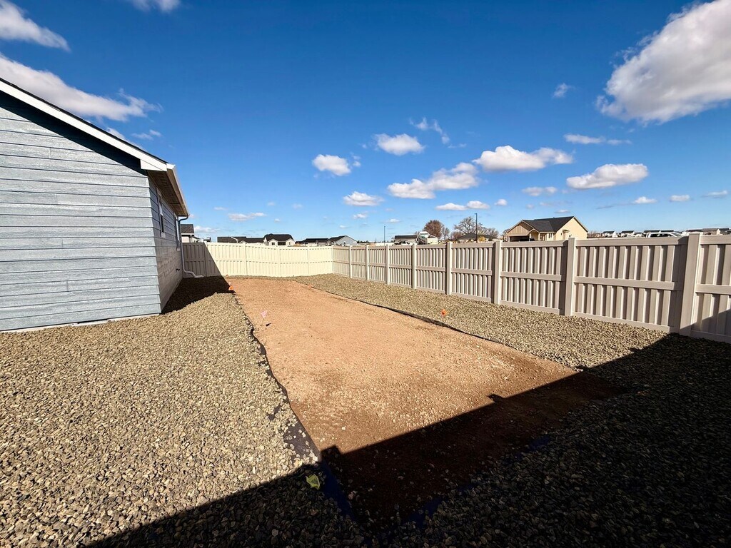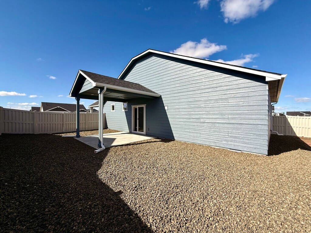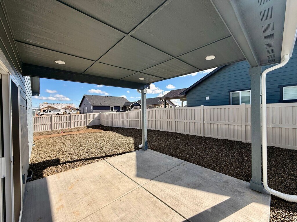 Brand-new home offering comfort, space, and modern design! The spacious living room flows seamlessly into the dining area, while the efficiently designed kitchen features generous counter space and abundant cabinetry for storage. The expansive primary suite includes a dual-vanity bathroom and a large walk-in closet. Two additional sizeable bedrooms offer large closets, with one providing the option to be converted into a private den or home office. Step outside to enjoy relaxing evenings on the covered patio overlooking the fully fenced backyard—perfect for entertaining,