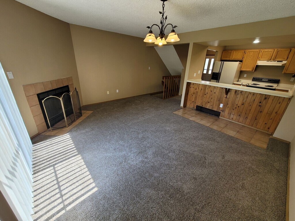 Gated community. Two-story townhome with finished basement and 1 car attached garage. Kitchen w/ breakfast bar and includes range, refrigerator & dishwasher. Living/dining room with wood-burning fireplace and walkout to 8x8 patio and complex green space. Spacious upper-level bedrooms feature vaulted ceilings and large closets. Finished basement. Full-Size washer and dryer in-unit. Convenient location near schools, parks, shopping, and military bases. New paint carpet throughout NO PETS ALLOWED PER HOA. Income 3x rent preferred. Apply at:
