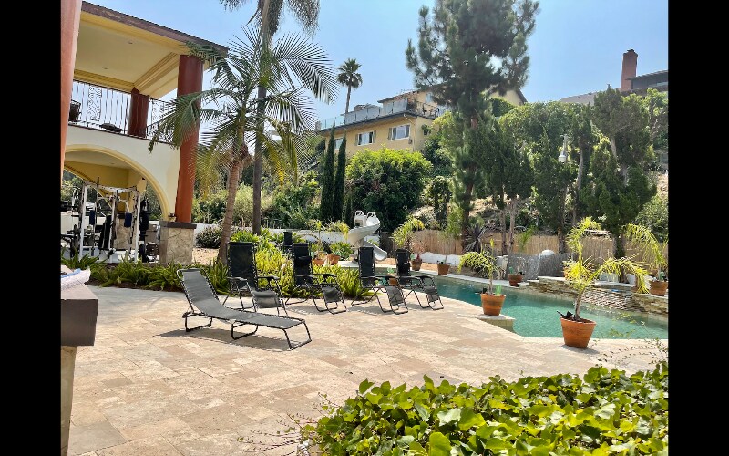 Property Id: 1714598 MONTH TO MONTH LEASE for "ONE" large beautiful very private Penthouse bedroom & bathroom for rent+deposit +1/6 of utilities in gorgeous mansion in hills. Very classy upscale black tie mansion with: Wi-Fi, full gym, waterfall pool, backyard, view, free parking, washer dryer. FACETIME & IN PERSON TOURS 7 days week THIS IS A SHARED 6 PERSON 3 STORY EXTREMELY LARGE MANSION IN THE HILLS WITH 6 SECLUDED PRIVATE BEDROOMS & 6 PRIVATE BATHROOMS SIMILAR TO A RITZ CARLTON HOTEL: 6 total people will be living in home that are professionals and work a lot. You have the privacy of an apartment due to well spaced out bedrooms with separate key door locks, yet the luxury of a spacious classy mansion with large beautiful common areas: large backyard, living room, family room kitchen included. Luxurious, quiet, peaceful home that you will love. LARGE KITCHEN HAS 6 SEPARATE REFRIGERATORS, CABINETS, SHELVES, & DRAWERS DESIGNATED FOR EACH OF THE 6 people. Centrally located in nice west LA neighborhood.