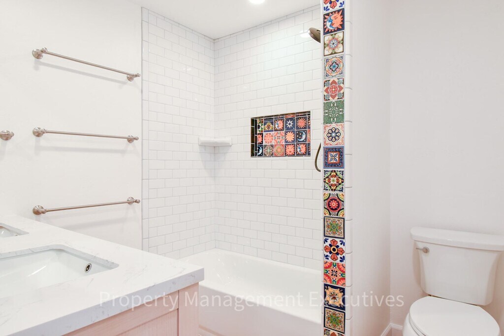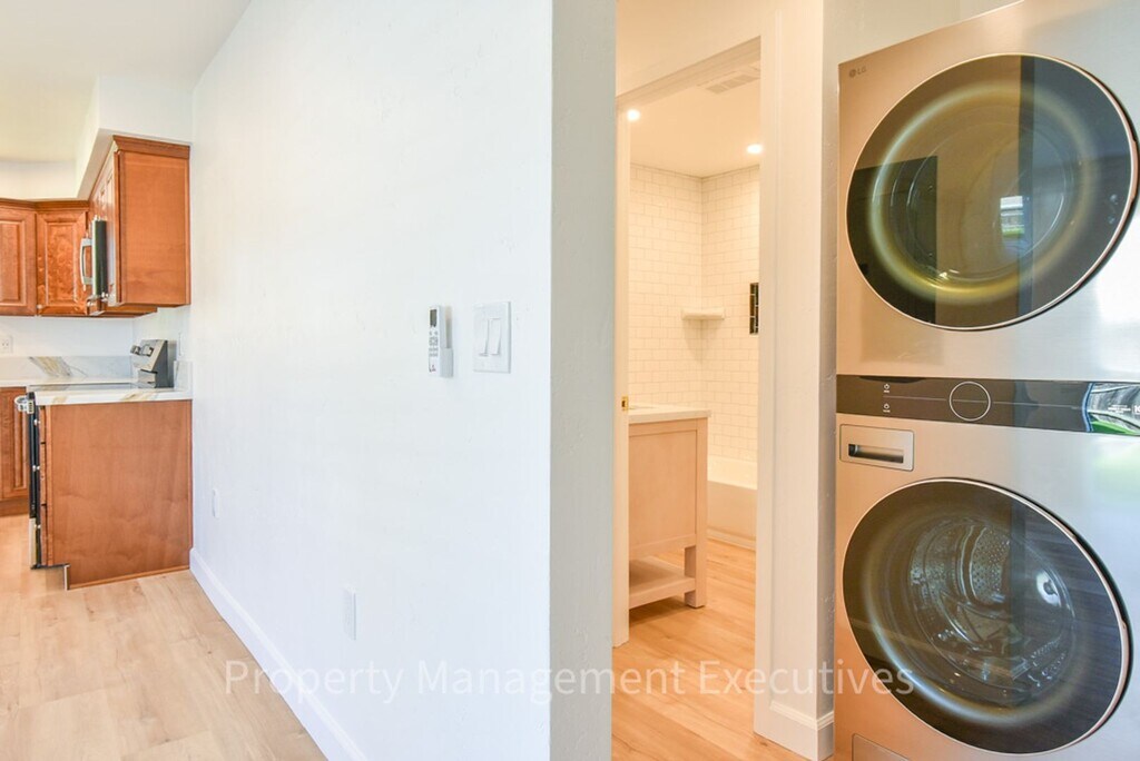 Brand new 3 bedroom, 1 bath unit with new everything and air conditioning. New spacious kitchen with high quality cabinets, granite counters, stainless dishwasher, refrigerator and microwave. Laminate hardwood flooring throughout. Ceiling fans in all rooms. A/C and heat in every room with individual controls for each area so everyone can have their own temperature setting in their room. Bathroom has a double sink and custom tile. Large new stack washer/dryer in the hallway. Backyard has a private yard area with high-quality artificial turf. 1 parking space included (street parking otherwise). Up to 2 cats allowed. Landlord pays trash only. 750 square feet. Annual leases only. Available Now! Qualifications: 700+ minimum credit score for at least 1 applicant. 2x rent minimum monthly net income combined between adults (income after taxes and deductions). No previous bankruptcies or evictions. 3 years previous rental history with positive references. Security deposit is the same as 1 month of rent.