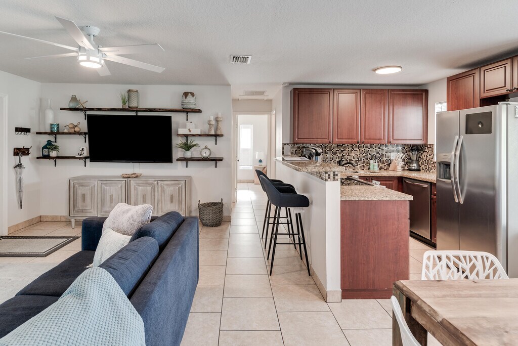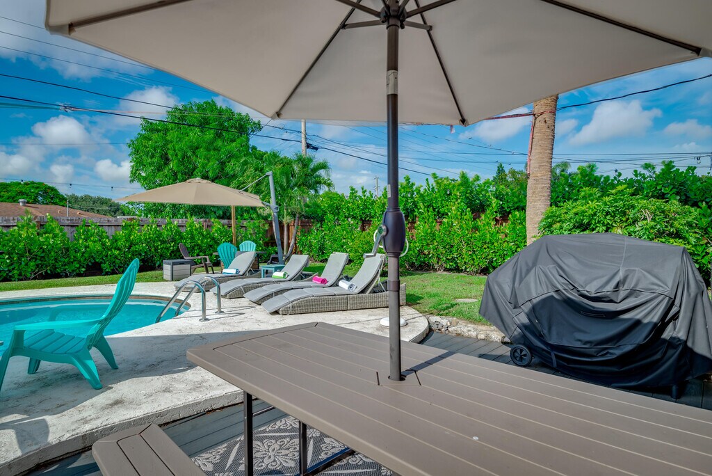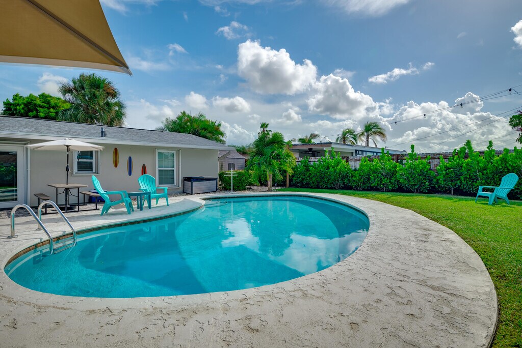 Beautiful 3BR/2BA weekly/monthly vacation & corporate rental in Palm Beach Gardens, just minutes from beaches, golf, dining, and shopping. Recently remodeled with cozy living room, fully equipped kitchen with stainless steel appliances, dining area, and washer/dryer. Sleeps 6-8: king suite, queen room, and full-over-full bunk beds. Private backyard oasis features a gorgeous saltwater pool, lounge chairs and outdoor dining seating, firepit, and large gas/charcoal grill--perfect for outdoor entertaining. Utilities include cable, high-speed Wi-Fi, and Tesla charger. Available Oct 12-23, Nov 19-Dec 25, Dec 30-Jan 2 & Apr-June. Ask about special rates!!