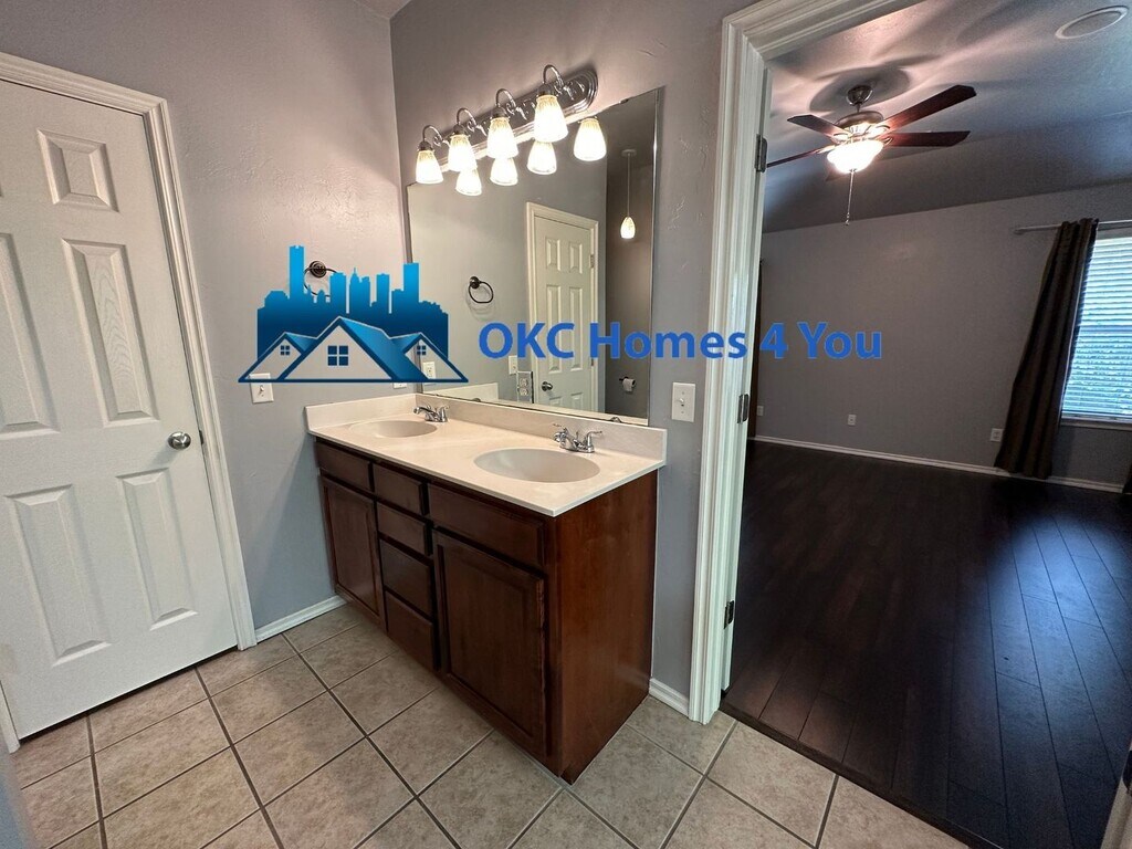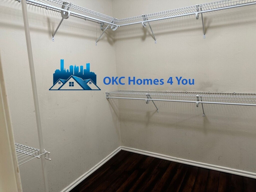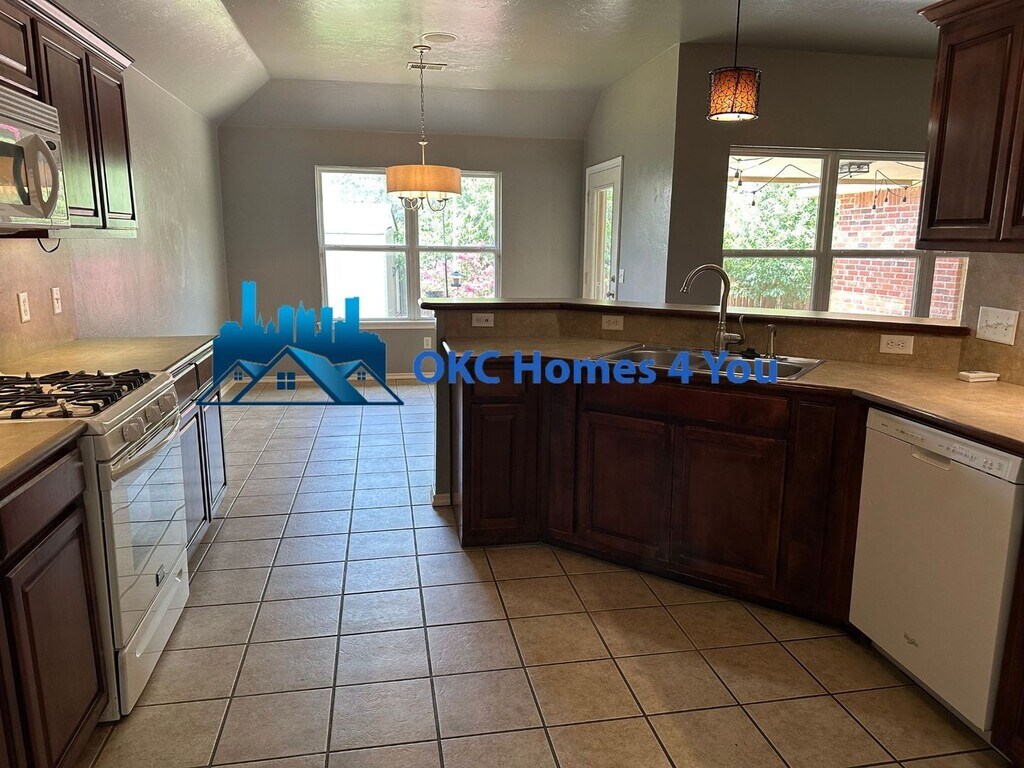 This beautiful home is located in the Thomas Trails neighborhood. It sits on a corner lot adjacent to a wonderful greenbelt area. The home has 3 bedrooms, 2 bathrooms, plus an office! The spacious living room contains a gas fireplace with custom tile work and a large wood mantel. The kitchen has ample storage, including a pantry, as well as a gas range, built-in microwave, dishwasher, and refrigerator. Just off the kitchen is a laundry room, complete with washer and dryer! The dining area just off the kitchen has a wonderful view of the back yard. The primary bedroom has an en-suite with dual vanities, a large soaker tub, and a large walk-in closet. The two other bedrooms have easy access to a shared bathroom with plenty of counter space and under the sink storage. The large backyard features a partially covered patio that extends into the sunshine and steps down into the beautifully landscaped yard. This home also has an in-ground storm shelter in the garage. Up to 2 pets may be considered with a $300 additional security deposit per pet. Dogs must be under 20 pounds when full grown. Applications are only accepted through our website, Security deposit - $1,700.00 Please visit our website, for information on housing voucher availability. This is a no smoking property. The tenant is responsible for all utilities.