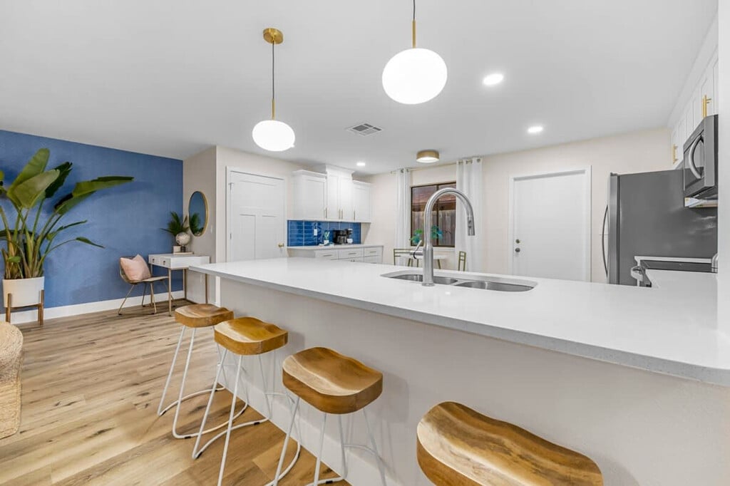 Welcome to this beautifully and uniquely designed updated beach bungalow in Cape Canaveral, just two blocks away from the breathtaking beach. With 2 bedrooms and 1 bath, this charming oasis offers both comfort and style. As you step inside, you'll be greeted by the coastal-inspired decor that instantly puts you in relax mode. The living area is thoughtfully furnished with plush sofas, perfect for unwinding after a long day of exploring. The well-appointed kitchen features modern appliances and all the utensils you need to whip up a delicious meal. A washer and dryer are conveniently available in the unit. Both bedrooms have been tastefully decorated with comfort in mind. Sink into the cozy king-size bed in the primary bedroom and queen-size bed in the second bedroom. The bathroom is clean, beautifully updated, meticulously designed and fully stocked with fresh towels and toiletries, ensuring a refreshing shower or bath experience. ONLY dogs are allowed at this property, with a fee of $100 per pet, per stay. In just two blocks, you'll find yourself on the sandy shores, where you can soak up the sun, take leisurely walks, or enjoy a picnic by the waves. Whether you're an early riser or a sunset lover, the beach offers unforgettable views and a sense of tranquility. Beyond the bungalow, Cape Canaveral has more to offer. Indulge in fresh seafood at the nearby restaurants, explore the local shops, or take a short drive to the famous Kennedy Space Center. Enjoy a stay here before or after a cruise out of Port Canaveral. Get a front row seat to one of the Space Coast's treasured rocket launches. The neighborhood is known for its friendly atmosphere and laid-back charm, making it the perfect place to unwind and create lasting memories. Located 4 blocks off A1A with Uber and Lyft being very prevalent in the area. Mailbox access is not available for guests. To ensure a comfortable start to your stay, we provide an initial stock of essentials like paper towels, toilet paper, tissues, coffee pods, creamer, sugar, light cleaning supplies, garbage bags, sponges, dish soap, and dishwasher tabs. A laptop computer is not included. If you need additional supplies during your stay, please plan to replenish them as needed. Our digital locks let you arrive and check yourselves in, but we’re here if you need us. Message us on the app if you need anything during your stay. For urgent matters, call the number provided. [SI]