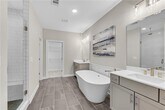 UPGRADES GALORE! Soaking tub,upgraded appliances,pot filler,fenced yard,office spac,and media room! This thoughtfully designed home is on a quiet cul-de-sac with a wooded backdrop,offering both privacy and beauty. The gourmet kitchen is a true centerpiece,showcasing a large entertaining island,quartz countertops,a walk-in pantry,soft-close cabinetry,an upgraded oven and stove,and the convenience of a pot filler. Flowing seamlessly into the family room with its inviting fireplace,the open floor-plan extends to a stained and sealed rear deck that overlooks the private,aluminum-fenced backyard. The upper level is a treat! You'll love the spacious owner's suite complete with a comfortable sitting area and a luxurious bath featuring a huge walk-in shower,an oversized soaking tub with a pedestal faucet,and an overhead shower and generous master closet. A dedicated office with a pocket door and custom built-in desk provides the perfect space for working from home. The secondary bedroom is large with a walk in closet and a beautiful en suite bathroom. The terrace level extends the home's versatility with a guest bedroom,full bath,and a bonus or media room enhanced by a 120-inch movie screen and an overhead projector wiring package. Every detail reflects quality craftsmanship,from the rich hardwood flooring on the main level,stairs,and upstairs hallway,to the upgraded window and door trim package,solid core doors,and custom blinds. The home if fully wired with CAT 7 for seamless connectivity and includes additional thoughtful touches such as multiple garage outlets and overhead storage racks. Full of natural light with high ceilings throughout,this home blends elegance,comfort,and modern convenience! Close to shopping,schools,and all the fun in downtown Canton.