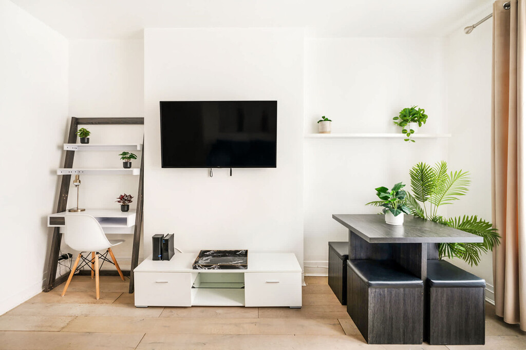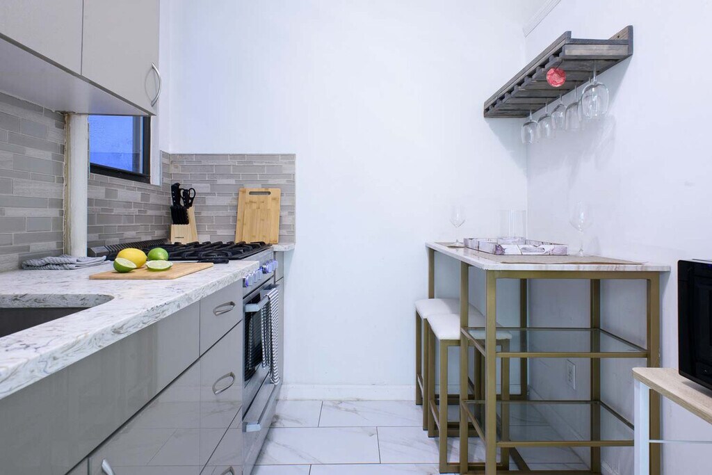 The advertised rate of $5,628/month is the lowest available price, based on a 30 day(s) stay with a move-in date of December 1, 2026. Rates vary depending on the duration of stay, season, and other parameters. For exact pricing and additional pricing components, please visit our website and enter your desired move-in and move-out dates. The rate is applicable when billed upfront; it can be higher if billed in multiple payments. Feel at home in this gorgeous and spacious 2-bedroom apartment located in prime Midtown West. This modern boutique building features video intercoms and a security system, ensuring a comfortable and secure living experience. This apartment is completely newly renovated and newly furnished, designed with great emphasis on comfort and luxury. The kitchen is fully equipped with new appliances, countertops, and cabinets. Enjoy the modern and chic bathroom, spacious and warm living area with a flat-screen TV, queen-size sofa, and designated desk work area. The bedroom features a queen-size luxurious bed and great closet space throughout the apartment. Wi-Fi and cable are available, along with fresh linens, towels, and extra pillows. Located in the perfect spot for work or pleasure, this apartment is surrounded by museums, cafes, delis, restaurants, gyms, bars, pubs, live music venues, and the lovely Hudson Highway boardwalk. Subway station lines are conveniently situated all around, with Central Park, Hell's Kitchen, Rockefeller Center, Times Square, Broadway theaters, 5th Avenue shopping, Time Warner Mall, and the culture-packed Lincoln Center just steps away. New York City's heating season is until the end of May. Beginning around mid-April, window air conditioning will be installed in the apartment. You can request an earlier installation if needed. [SI]