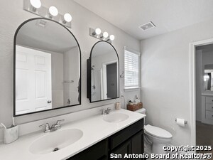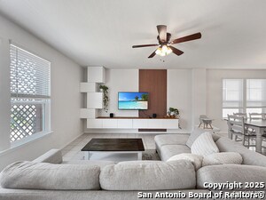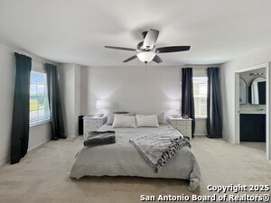 Welcome to Elley Lane Subdivision! This spacious two-story home offers 4 bedrooms, 3 full baths, plus a private office-perfect for working or studying from home. The open-concept floor plan features a bright living area that flows seamlessly into the formal dining, breakfast nook, and stunning kitchen complete with granite countertops, tiled backsplash, stainless steel appliances, RO system, a breakfast island, and ample storage. Downstairs, you'll find a dedicated office and a secondary bedroom with a full bath-ideal for guests or multigenerational living. Upstairs, the generous primary suite boasts a spa-like bath with a soaking tub, separate shower, double vanity, and an oversized walk-in closet. Two additional bedrooms share a full bath, along with a versatile game room offering extra space for entertaining or relaxing. The laundry room is conveniently located upstairs, complete with washer and dryer included. Step outside to enjoy the spacious backyard with a large pergola, perfect for evening gatherings, plus garden boxes ready for your green thumb. Additional upgrades include custom closet shelving, built-in bookshelves, updated bathroom mirrors, and a Murphy bed, and water softener, and garage shelves. With easy access to IH-35, IH-10, shopping, and dining, this home combines comfort, style, and convenience.