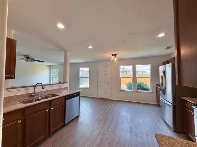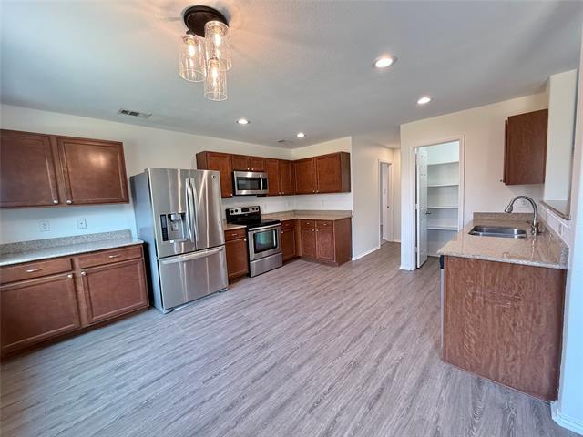 Welcome to this beautifully designed home that offers the perfect blend of warmth, style, and modern convenience. Located in the highly sought-after Northwest ISD, this spacious residence features an open concept layout that is ideal for both daily living and entertaining. With 4 good-sized bedrooms and 3 updated bathrooms, you'll find plenty of room for everyone. The home has been meticulously maintained and boasts new carpet and fresh paint throughout, making it move-in ready. The functional layout provides ample storage space, ensuring your belongings are well-organized. The kitchen is equipped with stainless steel appliances, natural stone countertops and new light fixtures, elevating the home's contemporary feel. Step outside to enjoy the community amenities, including a sparkling pool, playground, park, scenic trails, and a peaceful fishing pond. Don't miss your chance to become part of this friendly and desirable neighborhood!
