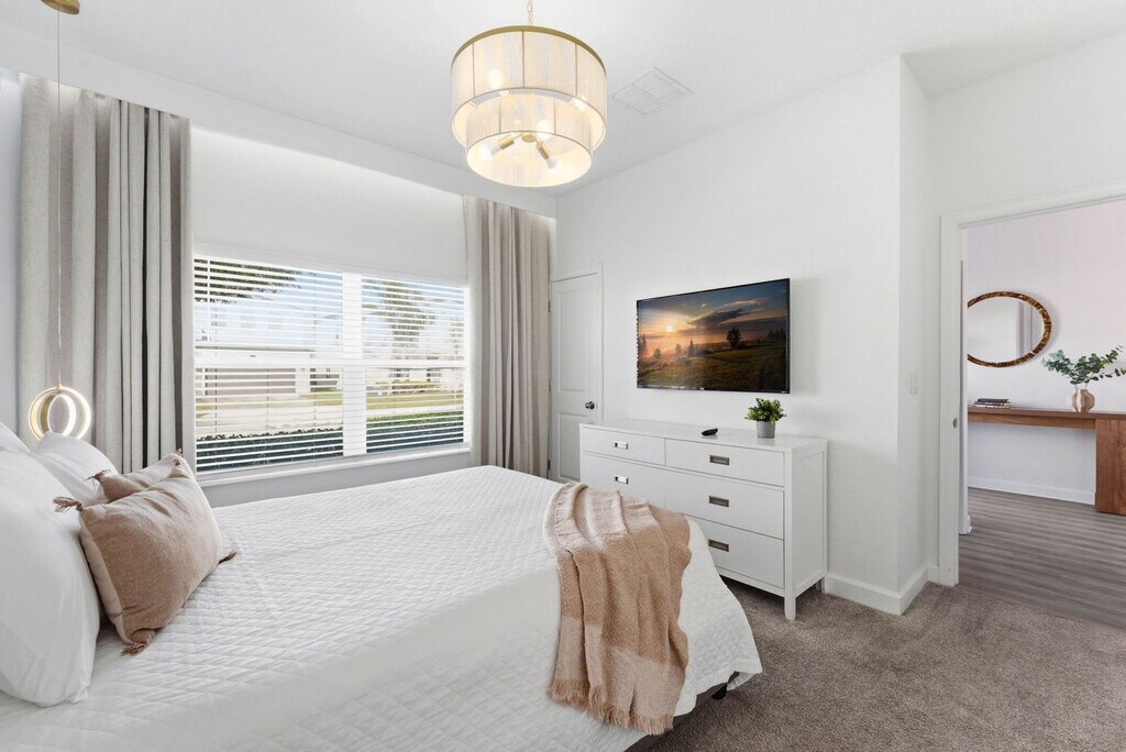 Feel at home in this chic, luxury 4-bedroom, 3-bathroom townhome in Champions Gate, accommodating up to 13 guests. This beautifully decorated, modern retreat is ideally located near Disney, shopping, and dining. This renovated townhome features an open-concept living space that seamlessly connects the living room, dining area, and fully equipped gourmet kitchen. Enjoy high-speed Wi-Fi and an in-home laundry room. The themed bedrooms include a Harry Potter–themed bedroom with a double-over-double bunk bed plus an additional single bed and a Mickey Mouse–themed bedroom with a double-over-double bunk bed. Enjoy your own private, heatable pool. Optional pool heating and BBQ grill rental are available for an additional fee. Complimentary parking is included. Champions Gate Resort offers a resort-style community with amenities such as tennis, beach volleyball, and a golf course. A restaurant and fitness center are available, along with a swimming pool complex featuring slides, a lazy river, and a kids splash pool. The resort is just 20 minutes from Disney Parks, with shopping, dining, and supermarkets nearby. A detailed digital guide with essential information and local recommendations is provided. The team is available 24/7 for assistance. Replenishment of the welcome kit with essential supplies is based on guest usage. [SI]