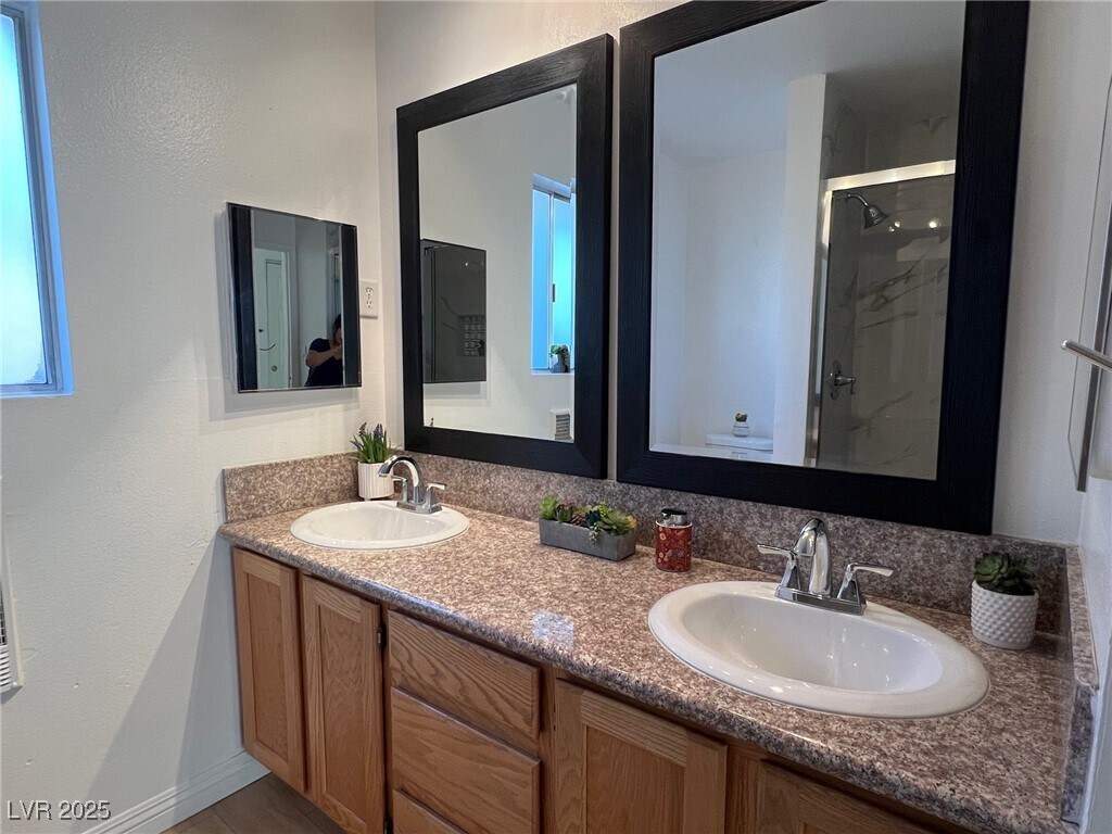 A Hidden Gem! SINGLE STORY HOUSE has 2 spacious bedrooms, 1 bathroom is located by The Medical District, UMC, Valley Hospital, Medical and Dental Schools, Near Downtown, close to the bustling Strip. This One Story house has a light welcoming floorplan and tiled floors for the allergy prone. New large shower with real marble niche with large tile surround and double glass modern frameless shower doors just installed. Grante countertops and double vanity in bathroom. Elongated lavatory. Spacious bedrooms, Primary bedroom has walk in closet, secondary bedroom has large closet. Large bright living room. Complimentary washer, dryer and refrigerator. House is immaculately clean. Lockable storage shed in backyard. Enclosed backyard is nestled under the shade of a large fig tree with synthetic lawn. **Regret No Pets. No Smokers. Owners are looking for clean and responsible tenants with great rental history.