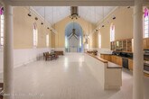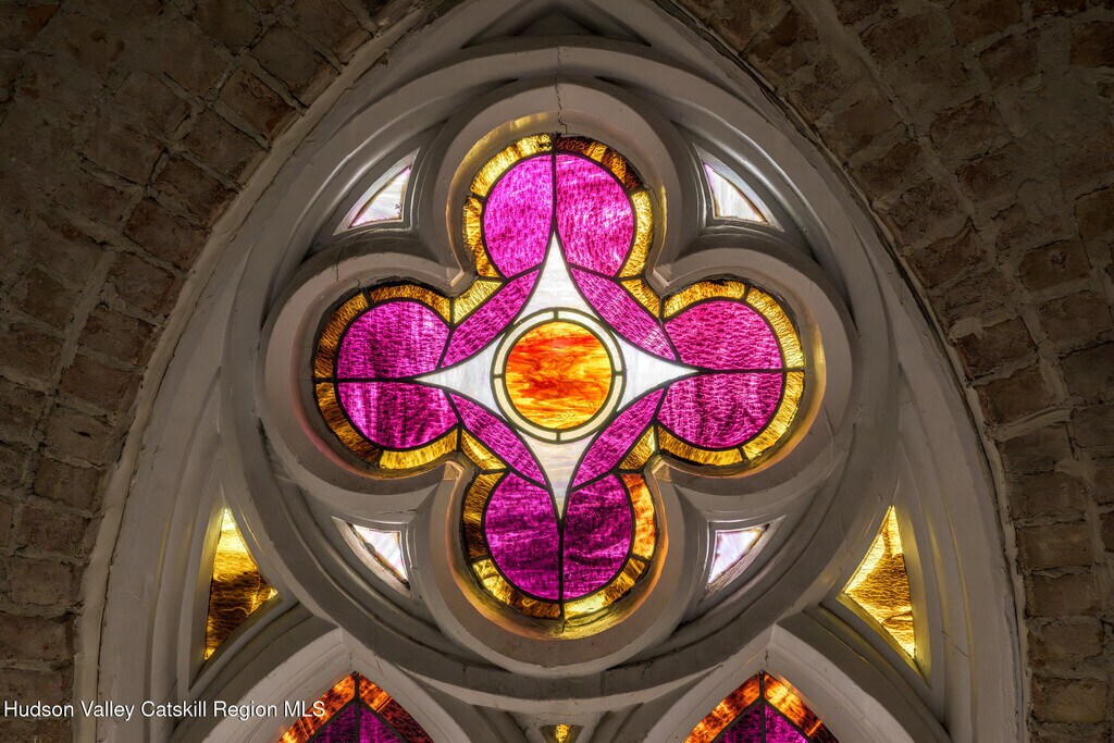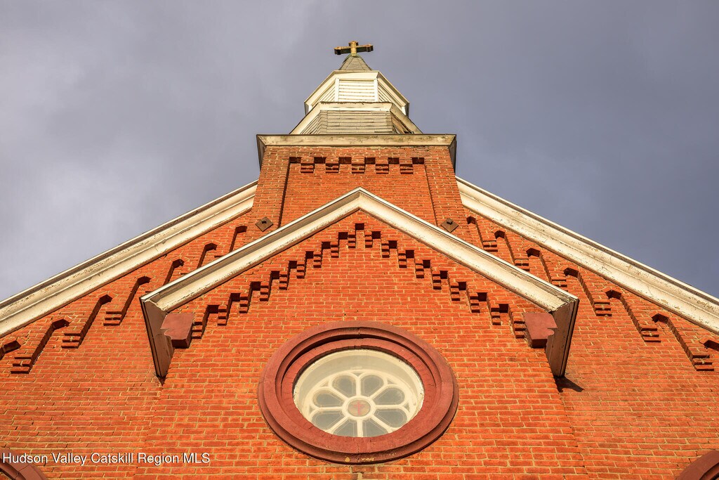 A Unique Space Reimagined in the Heart of Hudson Rising with quiet grandeur in Hudson's historic Armory District,this 1870 brick church has been reborn as an extraordinary private residence — a seamless blend of heritage and modern artistry. Inside,30-foot ceilings lift the eye toward hand-hewn beams and light-dappled brick walls,while an open 2,500-square-foot plan creates an atmosphere both expansive and intimate. Every detail feels intentional: a gourmet kitchen designed for conversation as much as cooking; serene new baths that balance utility with elegance; and central air ensuring comfort through every season. The pièce de résistance is the lofted primary suite — a tranquil aerie overlooking the vast main hall,crowned by the church's original circular stained-glass window. Each morning,colored light spills through the glass in shifting patterns,transforming the room into a living work of art. Fully equipped and partially furnished,this rare sanctuary invites imagination — equally suited to a designer's atelier,an artist's retreat,or a life lived expansively. Steps from Hudson's galleries,cafés,and cultural pulse,it offers both inspiration and refuge.