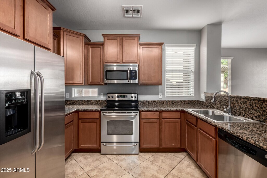 Don't miss out on this fantastic rental opportunity! Lovely two-story home with a great location near restaurants and shopping,with easy freeway access! The interior will charm you with a comfortable layout full of sunlight,showcasing a blend of tile & wood-look flooring,and neutral tones throughout. The impeccable kitchen comes equipped with staggered cabinets adorned with crown molding,a spacious peninsula with a breakfast bar,and stainless steel appliances. The main bedroom promises a good night's sleep and hosts a walk-in closet for easy organization and a full ensuite with an oversized dual-sink vanity. Enjoy weekend grills and peaceful evenings on the patio,and don't forget to visit the community's pool and playground for fun times! Welcome home!