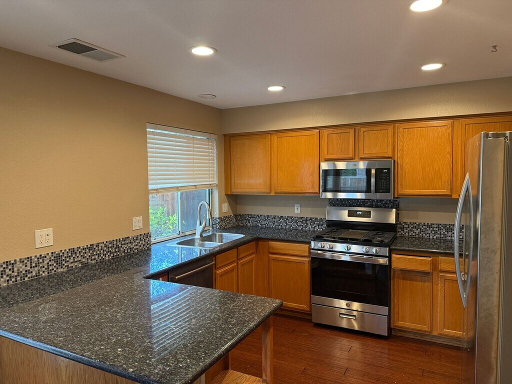 This impeccably maintained single-family home is situated in the highly sought after California Impressions Community. Step inside to discover hardwood floors, soaring ceilings, and abundant natural light throughout. The inviting living and dining areas are spacious for modern living. Family room with cozy fireplace and entertainment niche, perfect for relaxing or entertaining. The custom kitchen boasts granite countertops, ample cabinetry, stainless appliances and overlooks the family room. Upstairs, features an oversized master suite with a large walk-in closet and a luxurious en-suite bathroom featuring a double vanity, soaking tub, and separate shower. Two additional bedrooms and a full hallway bath complete the upper level. Enjoy outdoor living in the private, low-maintenance backyard-perfect for play, gardening, or weekend BBQs. A two-car garage and inside laundry offer everyday convenience. Easily access major freeways including 237, 680, 880, and 101. Conveniently located near dining options, the Guadalupe River Trail, tech companies, Rivermark Plaza, and Levi's Stadium. Application fee is $45 per person over 18. Easy online application is accessed at We are a local property management company and will meet you at the property to personally show it to you. When you rent from Fireside Property Management you get a custom app to pay rent or request maintenance. We strive to make your rental experience great! CA DRE 01862268