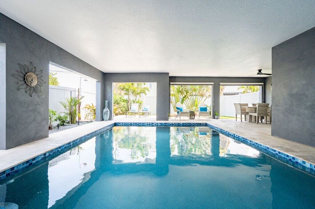 Live like you're on vacation every day in this fully furnished 4-bedroom + office, 3-bath pool home, just steps from stunning Madeira Beach! Available now for 3-month minimum stays, this beachside retreat is ideal for snowbirds, remote workers, or anyone seeking a warm winter escape with all the comforts of home. Inside, enjoy a bright, open layout featuring a modern kitchen with quartz countertops, stainless steel appliances, and a spacious island perfect for casual dining or happy hour. The oak vinyl floors and coastal décor create a relaxed, breezy vibe throughout. The primary suite offers partial water views and spa-like finishes—your personal oasis after a day in the sun. Step outside to your private tropical backyard, complete with a brand-new saltwater pool, comfortable loungers, and an outdoor dining area with a TV—perfect for grilling, entertaining, or watching the sunset. Plus, we offer deposit-free living through Obligo, so you can skip the upfront deposit and enjoy hassle-free renting. **Electric & Water are additional to the posted rental rate Resident Benefit Package Includes: 24/7 Maintenance Support Seamless Utility/Cable/Internet Setup Credit Reporting to Boost Your Score HVAC Filter Delivery $100k Liability Insurance $40 Gift Card for On-Time Rent Payments Available now — book your stay today and enjoy the ultimate beachside lifestyle! Contact us for an in-person or FaceTime showing.