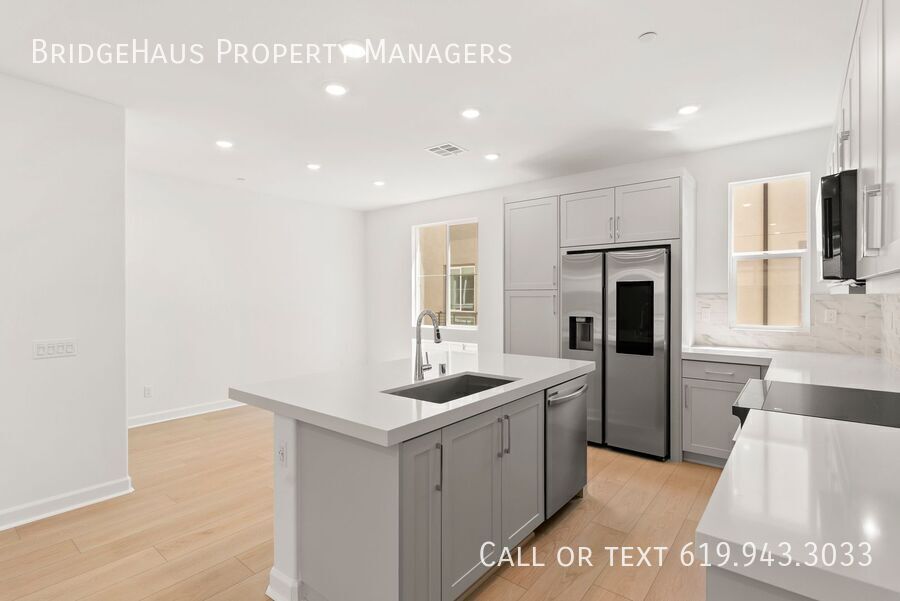 Be the first to live in this stunning brand-new townhome in San Marcos’ sought-after Radius Hill District by Lennar. This beautifully designed 3 bedroom, 2.5 bathroom, three-story home offers 1,544 square feet of bright, modern living space with stylish upgrades throughout. The open-concept main level is perfect for everyday living and entertaining, featuring luxury plank flooring, and a sleek kitchen with brand-new quartz countertops, a large island, and all new appliances. Upstairs, the spacious primary suite includes a walk-in closet and an elegant en-suite bath, while two additional bedrooms and a full bathroom give you plenty of room for guests, family, or a home office. Enjoy the convenience of an attached 2-car garage with built-in EV charging. This energy-smart home also includes a full solar system with battery backup at no extra cost, helping keep electricity bills incredibly low. Brand-new refrigerator, stove, oven, washer, and dryer are all included. Set in a vibrant new community with future amenities including a recreation center, pool, pickleball courts, parks, and trails, this home also offers quick access to Highway 78, top-rated schools, shopping, dining, and more. Some dining and conveniences are even within walking distance. Tenant pays water, trash, and electricity. Two garage parking spaces included. BridgeHaus Property Managers, INC CA DRE #02143972 Brief Summary Of Rental Criteria - Household must make at least 2.5 times the rent in income. - Applicants must have a minimum credit score of 650. - Each person over the age of 18 must complete an application and pay a $42 screening fee. - You must be willing to sign a 12-month lease. - We score each household based on their income, credit score and rental history. What You Might Have A Question About - Monthly Rent: $3,995. - Security Deposit: $3,995. - Two-car garage. - Washer/Dryer included - Central AC/Heat In Unit Laundry Solar Panels