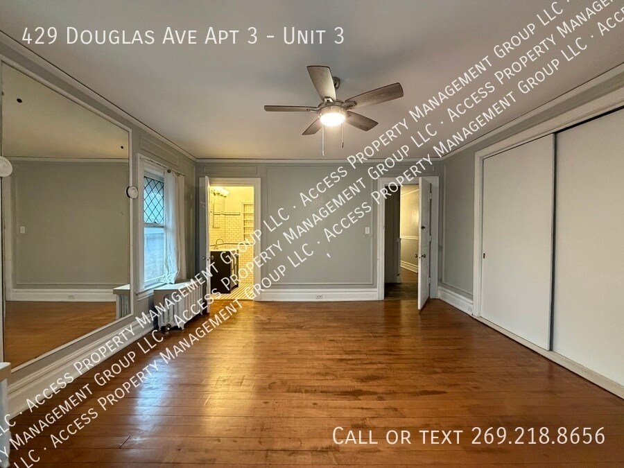 429 Douglas Apt 3 is a large, very functional and unique 1 bedroom apartment in Kalamazoo! This unit is located on the second level of the house and has a front and back deck (shared with other residents). Stepping into the unit you will find a set of coat hooks on your left and a huge guest bathroom/laundry room on your right. The laundry hookups are provided and are ready for your gas dryer and a washer! The large kitchen includes 2 pantries and space enough for a table. If you prefer to have a separate dining room there is an adjacent room perfect for that purpose! The kitchen includes fridge, range and oven. There are some built in cabinets down the hall near the huge bedroom. The bedroom has an attached full bathroom that is fully tiled. Basement access is available with shared laundry also available in the basement if you don't have your own machines to hook up in the apartment. Limited parking is available behind the home and in the garage (garage parking is assigned by lease). Tenants are responsible for trash, snow removal and water/sewer. The water/sewer is billed monthly with your rent at $35/mo. Heat, electric, gas and lawn care are included in the rent! No smoking! Pets are ok - fees and restrictions apply! "The rental or lease of this property must comply with the City of Kalamazoo ordinance regulating the use of criminal background checks as part of the tenant screening process to provide individuals with criminal backgrounds a fair opportunity. For additional information please contact the City of Kalamazoo Civil Rights Board. $35 Water Sewer Charge Monthly $50 Application Fee Per Adult Air Conditioning Window/Wall Assigned Parking Driveway Shared Gas Included! No Smoking! Not Pet Friendly Security Deposit Equal To 1 Month's Rent Tenant Pays Trash Tenant Removes Snow Washer/Dryer Hook Up Washer/Dryer Shared