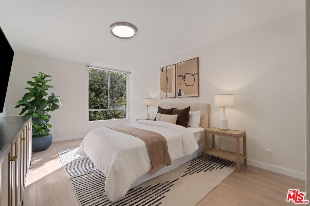 Available February 23! Newly Updated rarely available 2 bedroom 2 bathroom South Facing Unit at Park Oakhurst. Galley kitchen features granite counters and new appliances (Stove and Dishwasher). Formal Dining leads to formal living room with wet bar and access to the balcony. Both bedrooms are sizable and feature ample storage. Primary bedroom with ensuite bathroom and oversized walk in closet. Inside laundry. 2 Parking Spaces in the garage. Building has controlled access through the ButterflyMX intercom system, updated lobby, dog run, elevator and common courtyard which this unit looks out onto. Smaller building with only 15 units. Moments from Bristol Farms, Ralphs, restaurants and cafes. MLS# 25621847