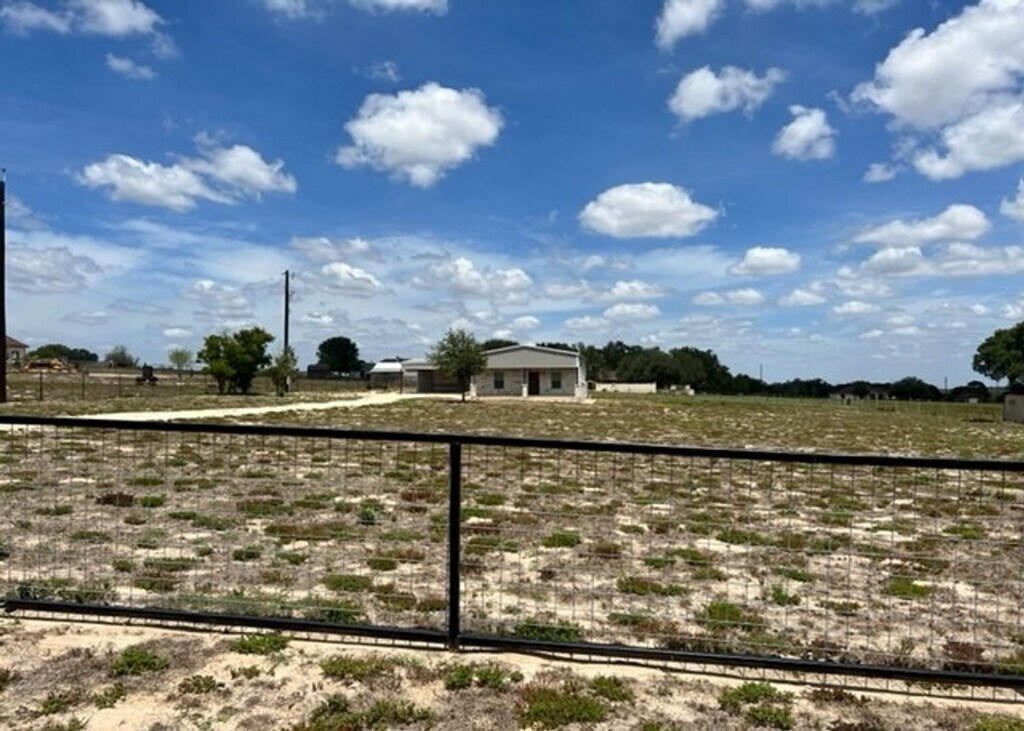 If you're looking for country living, this well-maintained two-bedroom barndominium sits on 1.84 acres of fully fenced property with a gated entrance and beautiful open views. The interior features stained concrete floors throughout for style and easy maintenance, a spacious living area that opens to the kitchen with granite countertops, a breakfast bar, and a flat-top stove. The home also offers comfortable bedrooms and a large indoor laundry room with plenty of space for additional storage. The property includes a workshop with a two-car carport, plus a covered storage building behind it that is ideal for outdoor entertaining. With plenty of space for an RV, boat, or additional equipment, this property offers the flexibility and privacy of country living while still providing practical amenities. Located in La Vernia ISD. Pets considered on a case-by-case basis.