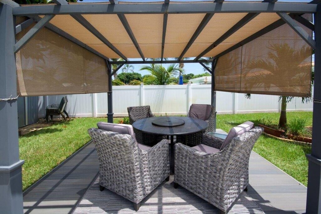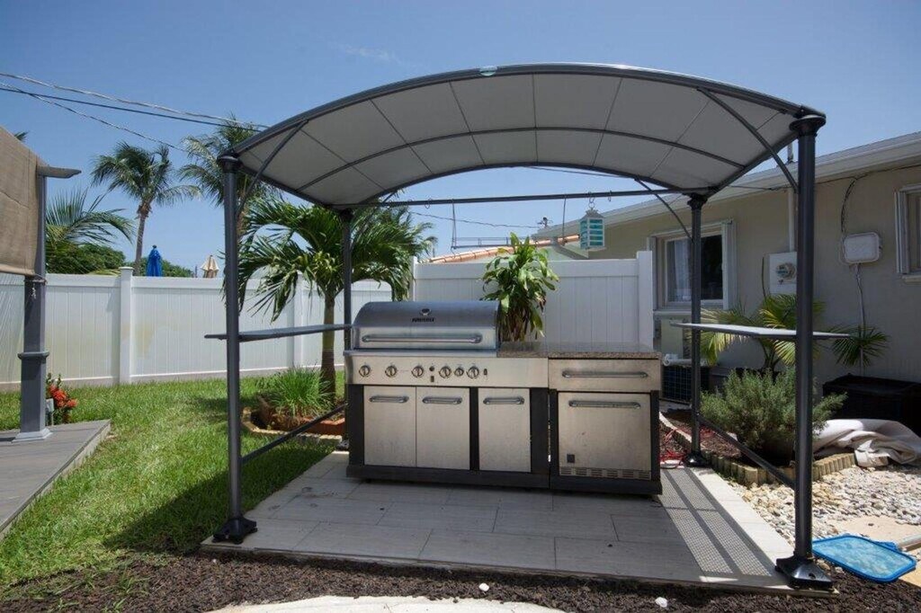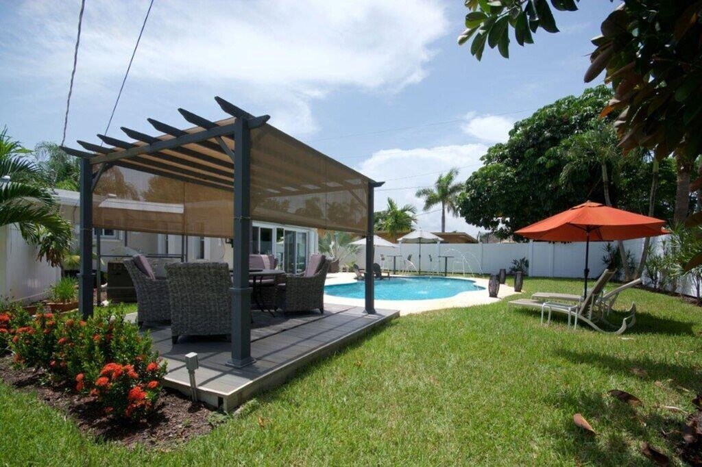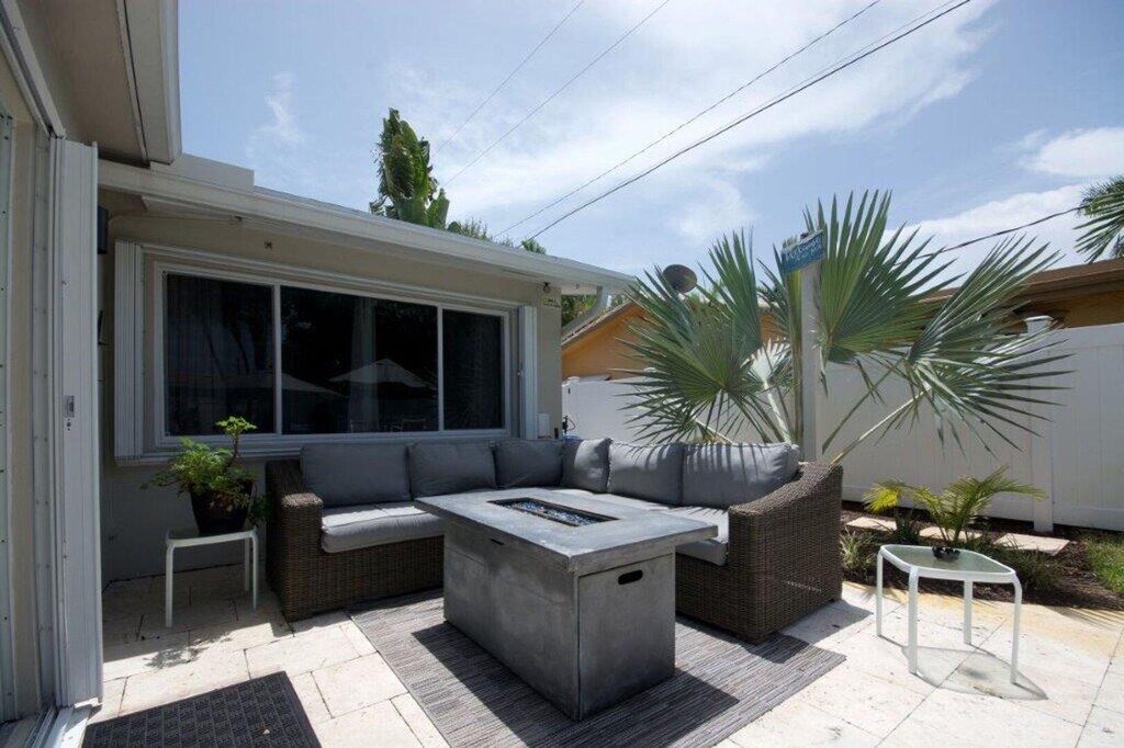 Step Into Sunshine: Modern Charm Meets Coastal Cool - Fully Furnished!A charming tropical retreat nestled in the heart of East Deerfield Beach, this stylishly updated 3-bedroom, 2-bath home perfectly blends comfort and sophistication. From the sleek, open-concept layout to the custom wine cabinet and designer lighting, every inch is thoughtfully curated for modern living. The spacious kitchen boasts stainless steel appliances and upgraded finishes, flowing effortlessly into the sunlit dining and living areas--ideal for entertaining, family gatherings, or simply relaxing in style. Outside, your private paradise awaits with a HEATED saltwater pool, expansive travertine patio, and lush landscaping surrounded by solar privacy fencing. Grill up a feast in the outdoor kitchen, unwind under the