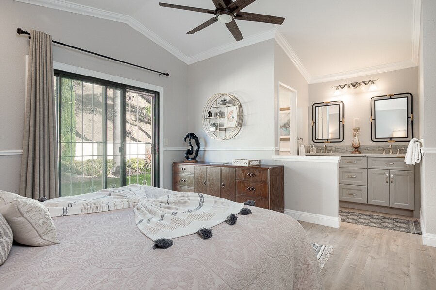 Exquisite furnished rental located within minutes of all San Diego's attractions! Stay in this amazing home fully equipped for your temporary housing needs. This custom single level home features a great room with TV, modern kitchen open to dining room with fireplace and sliding doors leading to the backyard with covered patio and BBQ.