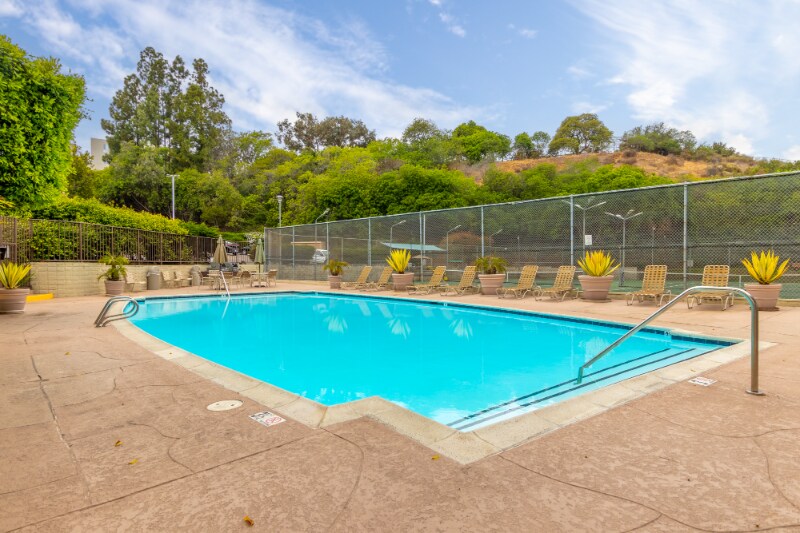 Property Id: 2045393 The unit features floor-to-ceiling windows that flood the space with natural light and offer stunning views of the serene canyon below. Inside, you'll find a fully renovated bathroom and a sleek kitchen equipped with brand-new dishwasher, microwave and range. The kitchen is fully furnished with a blender, coffee maker, utensils, and everything you need to cook and live comfortably during longer stays. A 65-inch TV adds to the comfort and entertainment, making this home the perfect blend of urban convenience and natural beauty. Enjoy a wide range of community amenities, including a spacious outdoor pool, indoor hot tub, natural gas BBQ grills, tennis courts and dog park. Additional conveniences include a 24-hour laundry facility, a beautifully maintained clubhouse, one assigned parking space in the garage, and ample guest parking throughout the community.