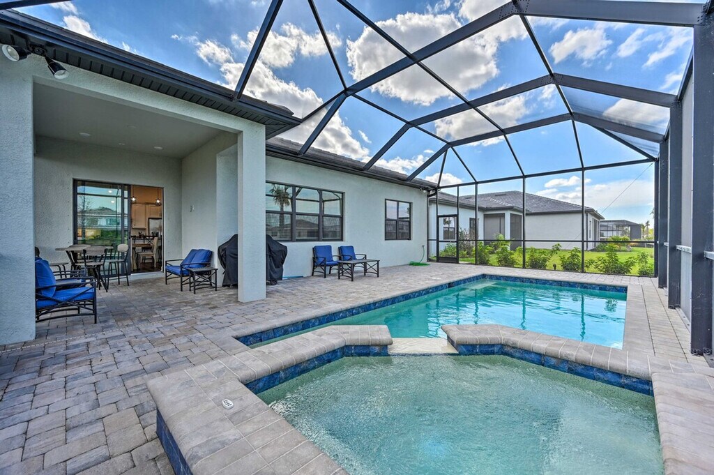 The advertised rate of $7,977/month is the lowest available price, based on a 30 day(s) stay with a move-in date of August 11, 2026. Rates vary depending on the duration of stay, season, and other parameters. For exact pricing and additional pricing components, please visit our website and enter your desired move-in and move-out dates. The rate is applicable when billed upfront; it can be higher if billed in multiple payments. Experience the charm of Southwest Florida from this delightful Ave Maria house, nestled in a newly built community. This 3-bedroom, 2-bathroom home offers upscale amenities and at-home comforts to ensure a seamless stay. Whether you're visiting the pristine beaches of Naples or taking an airboat ride through the Everglades, this house serves as the perfect launching point for all your adventures. After a hot day, look forward to a refreshing dip in the private pool. Designed with your comfort in mind, this home features a spacious lanai and a private outdoor pool and spa. The kitchen is fully equipped with bar seating, an electric stovetop, granite countertops, stainless steel appliances, and all the essentials for cooking. Indoor living spaces include a smart TV, dining table, ceiling fans, and an office with a desk workspace, two monitors, a meeting camera, and a printer. Pets are welcome with a $150 fee plus additional fees and taxes. Parking is available in the garage for two vehicles and on the driveway for two more. A golf cart is available for use, although a waiver may be required. Located in a vibrant community, you'll have access to amenities such as a cascading spa, water aerobics, a kid's pool, picnic pavilions, a concession stand, restrooms, a fitness center, and community events. This home is ideally situated for exploring nearby attractions, including the beaches of Naples and the Everglades. This property offers step-free access and features two exterior security cameras for your safety. The cameras are located on the front of the home facing the street and in the backyard facing the pool area, and they will be turned away while guests are in residence. No smoking is allowed, and while pets are welcome with a fee, no events, parties, or large gatherings are permitted. Guests must be at least 25 years old to book, and photo ID may be required upon check-in. This home is remote work-friendly, featuring an office with a desk workspace, two monitors, a meeting camera, and a printer. Free WiFi is provided, ensuring you stay connected during your stay. [SI]