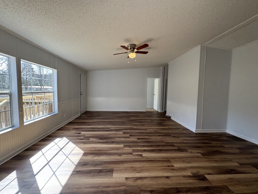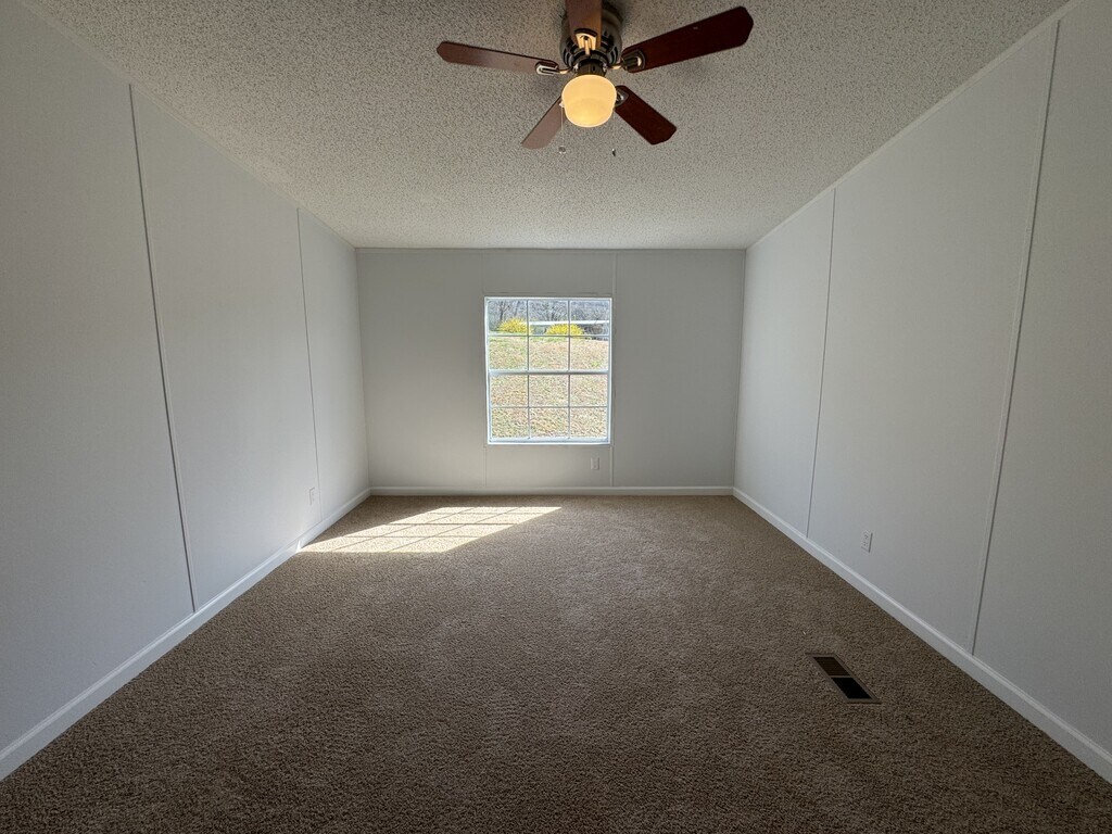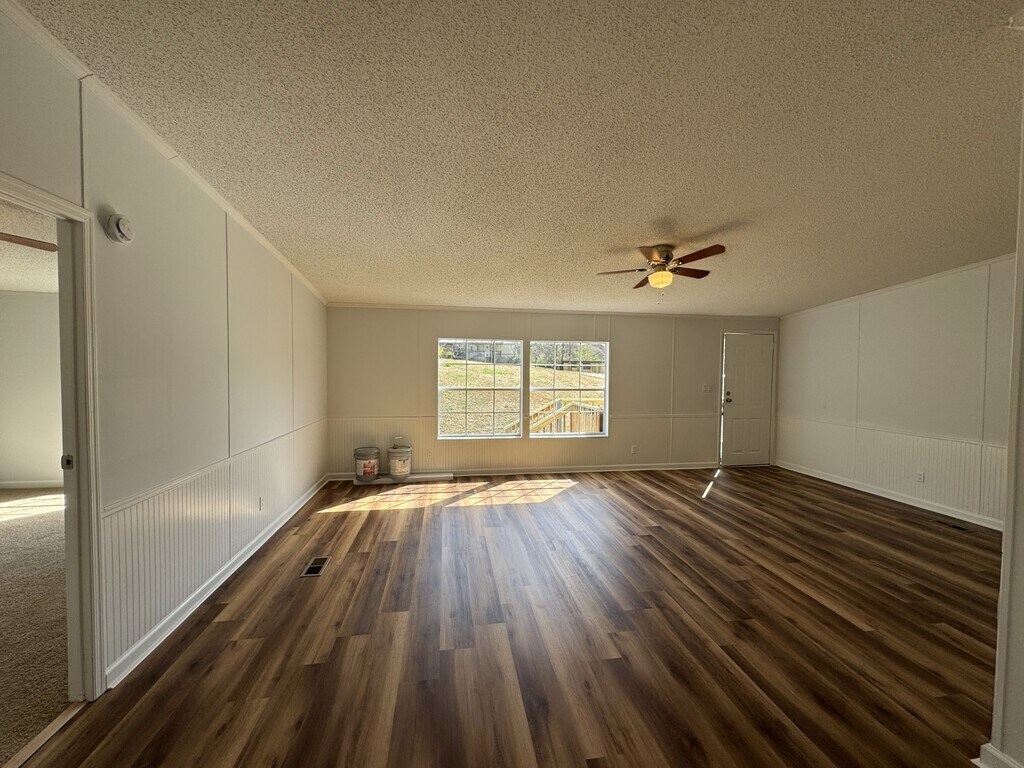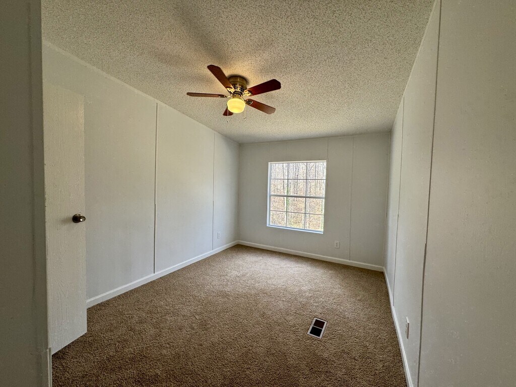 Situated away from the road on nearly an acre of land. New LVP flooring in the main area, paint throughout, carpet in each bedroom, and a totally new kitchen with granite counters and a pantry! Split bedroom plan with the primary bedroom on one side and two bedrooms on the other. Laundry closet with hook ups off the kitchen. Remodeled in 2025. Available April 1st.