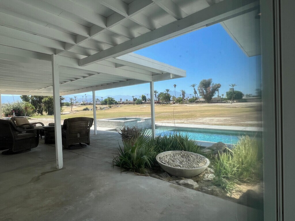 UNFURNISHED Southwest style 3 bedrooms 3 baths plus a den. Newly remodeled with a brand new POOL AND SPA. Lovely family home located in the Palm Desert Country Club community. Backyard is on the golf course facing 18th hole with beautiful lake, fairway, and mountain views. Open concept kitchen with new appliances and cabinets. Full size laundry room. Three generously sized bedrooms, two have On-suite baths. Large closets with plenty of storage spaces. Bonus room for recreation or office. High quality materials used throughout. Central air conditioning and two large water heaters. Enjoy the beautiful views in your brand new pool and spa. Backyard faces southwesterly with breathtaking sunsets. Two car carport, no garage. Tenant responsible for electric, gas, water, and internet. Pool Service provided Golf course home in the heart of Palm Desert.