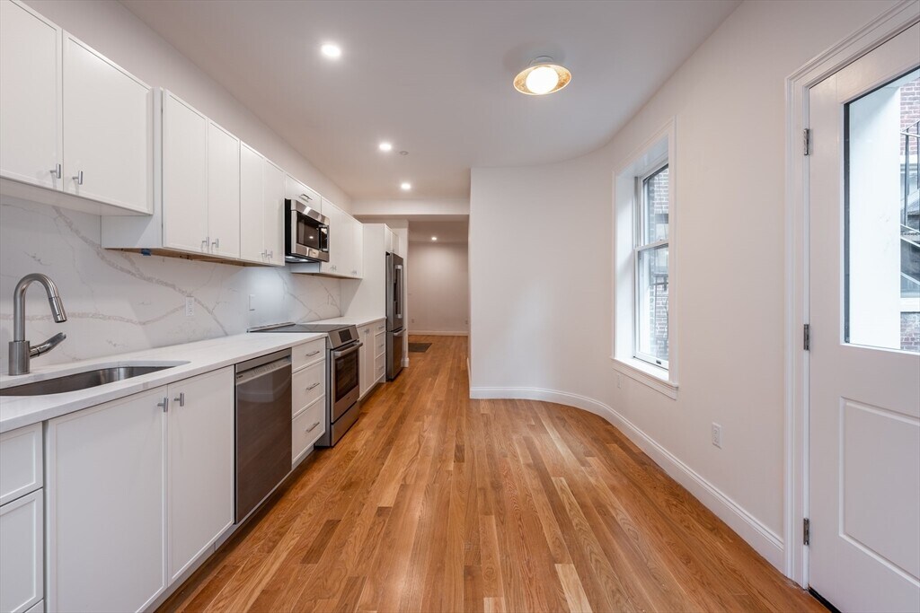 JUNE 1 MOVE IN - Beacon Hill Bowdoin Street brand new full renovation 3 bedroom 2 bath duplex - construction just completed! 1st level has large living room with beautiful original mantel,high ceilings and recessed lights. Kitchen features dining area,quartz counters,stainless appliances and tile backsplash. 1st bedroom with good closet space,a full bathroom and a HUGE skylight complete this level. Downstairs is 2 additional bedrooms,another full bathroom,storage and IN UNIT LAUNDRY. Gorgeous hardwood floors and painted white brick for a clean/sleek feel throughout the unit. Central air! MLS# 73488609