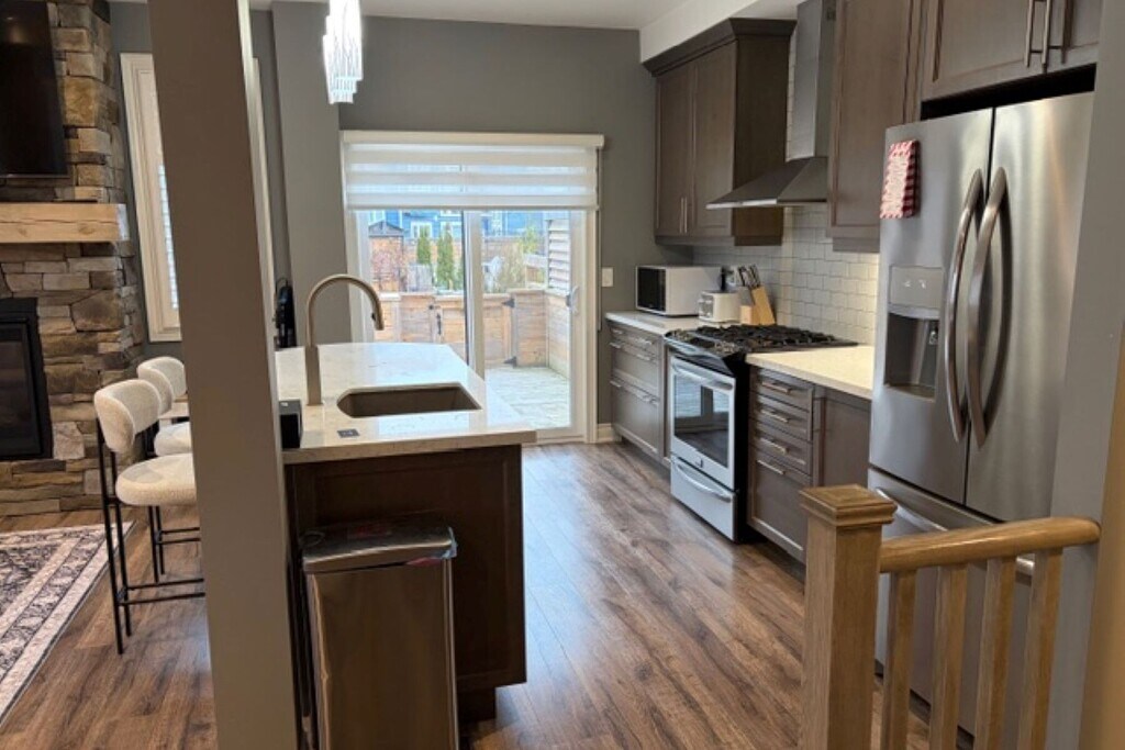 Welcome to 43 Carpenter, with ideal family accommodations and the use of a seasonal inground pool and rec. centre. This seasonal lease is available immediately until November. Price is per month and utilities are in addition. "Blue Fairway" is a family friendly development, central to all activities and amenities in Collngwood, Blue Mountains and Thornbury. Short drive to all locations with a variety of restaurants, coffee shops, indoor and outdoor activities, beaches, golf...to name a few. #43 is one of the larger models with four bedrooms upstairs (one is being used as an office), and one located in the basement with den, full ensuite bathroom and walk-in closet. Large primary bedroom with king bed has a four piece ensuite and an additional full bathroom upstairs. Additional bedrooms with queen and double beds. Spacious main level with gas fireplace and open concept living room dining/kitchen area. Patio doors from kitchen area gives access to private terrace. Laundry on main level incorporated into convenient bathroom. Access to garage. Property is not available as an annual rental. 50% of total rental period is due upon fully signed Agreement with balance and utility/damage deposit of 3000 (depending upon length of rental) due three weeks prior to occupancy. Tenants to provide proof of liability insurance prior to occupancy. Landlord preference is no pets, but may consider a small non-shedding dog.