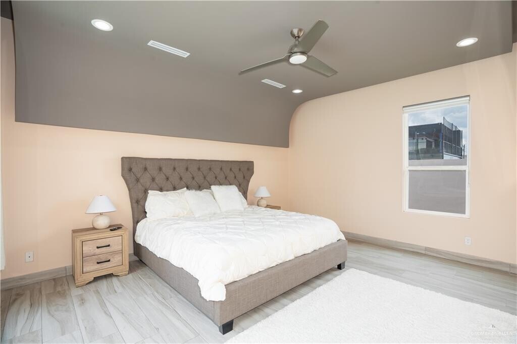 Contemporary 2 story home in the desirable Villas San Miguel,where modern design meets comfort and functionality. Updated with a brand-new roof,tankless water heater,new exterior stucco,and striking stone accents,this home offers lasting quality and style. Enjoy porcelain flooring,quartz countertops,soaring ceilings,and a bright open-concept layout ideal for entertaining. The sleek kitchen features modern cabinetry,a spacious island that flows seamlessly into the living and dining areas. Four spacious bedrooms,each with its own private bath,including a luxurious main suite with a spa-inspired bathroom and oversized shower. Step outside to a private backyard retreat with a sparkling pool and waterfall,perfect for relaxing or hosting guests. Added highlights include a two-car garage with contemporary glass-panel doors and a resort-style bar area,conveniently located near Expressway with easy access to shops,dining,and local venues. Schedule your private showing today.