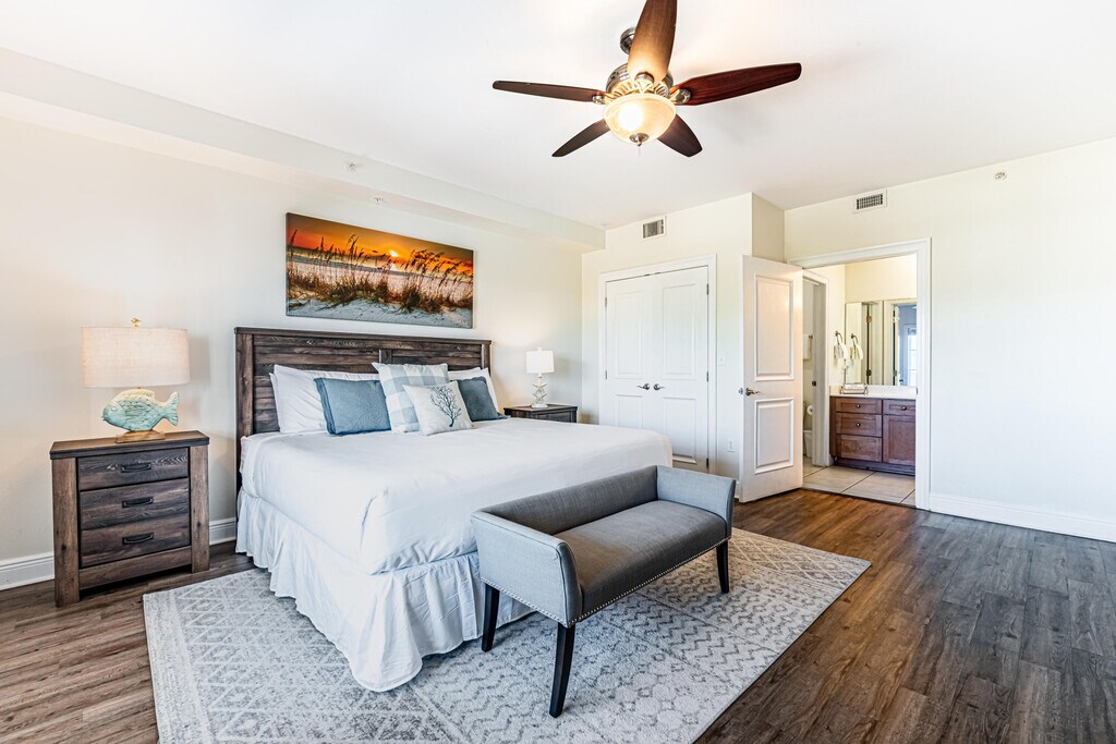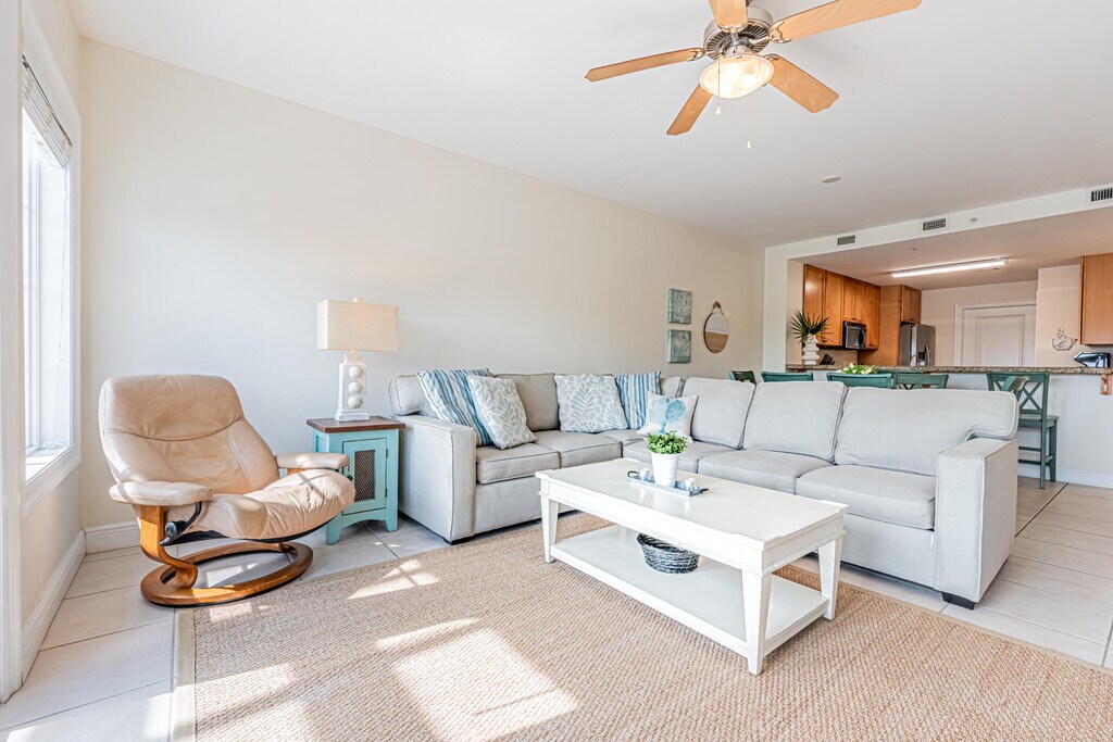 Furnished and available for winter monthly rentals Nov-Feb. Please call our office for details at . 3BR/2BA condo in Cassine Station, Seagrove Beach. Perched on the 4th floor, this serene retreat is just 100 steps from sugar-white sands and minutes from Seaside, The Big Chill, and scenic 30A fun. Enjoy a spacious kitchen with granite countertops and stainless steel appliances, open dining and living areas with smart TV, and a large balcony with great views. The master suite features a king bed, balcony access, and spa-like bath with walk-in shower and soaking tub. Guests will love the additional king bedroom and bunk room. Extras include WiFi, laundry, beach gear, and access to 2 pools, tennis, pickleball, trails, and grilling areas.