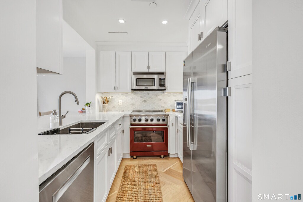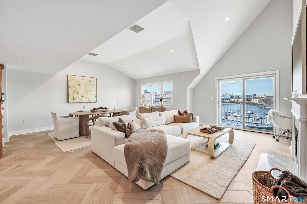 Call for Availability - Luxurious fully furnished penthouse with jaw-dropping water & city views day and night in Stamford's premier waterfront community, Shippan Point. Exclusive building with private elevator, separate entrance, and only two units per floor. Renovated throughout with a stunning kitchen, oversized quartz breakfast bar, and spa-like baths. Balcony overlooks the marina; sunsets, boats, and beach living just minutes away. Close to downtown, dining, shopping, and train. Covered parking available. Annual and short-term lease options available. MLS# 24153958
