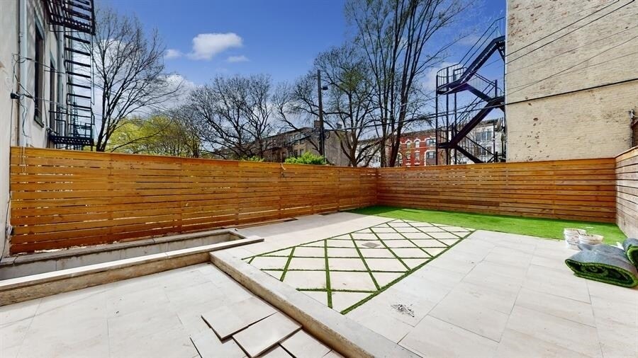 Step into this stylish 1 bed / 1 bath apartment in a renovated brownstone in Jersey City’s vibrant Bergen-Lafayette. This unit blends modern living with historic charm, think soaring ceilings, oversized windows, and a decorative fireplace that adds the perfect touch of character. Enjoy an open-concept layout with white oak hardwood floors, a sleek eat-in kitchen with quartz countertops, and brand-new stainless steel appliances. Your private terrace is ideal for morning coffee, weekend brunch, or just relaxing outdoors. Located in the heart of Bergen-Lafayette, you’ll have an easy commute to NYC and quick access to local cafes, bars, and parks. Don’t miss out—schedule your private showing today!