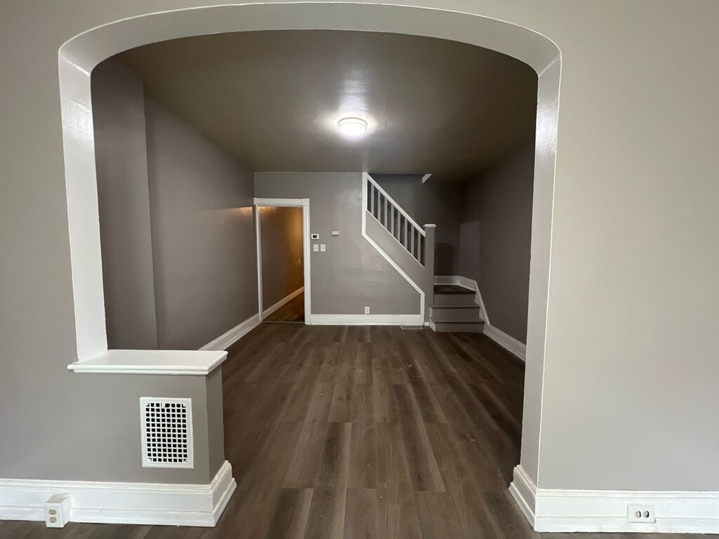 Section 8 considered! Explore affordable living in this attractive row home for rent. Recently completely remodeled, the home features brand-new floors, new kitchen cabinets, countertops, and appliances, along with a completely renovated bathroom, all highlighted by fresh paint. It offers three cozy bedrooms, one of which is a walk-through, providing flexible living arrangements. The property also includes storage in the attic for extra space and a small backyard. Please note that on-street parking is not available.Tenants pay all utilities. Due to move-in: First month's rent, 1 month's security deposit, and a $197 admin fee. Available Immediately!!