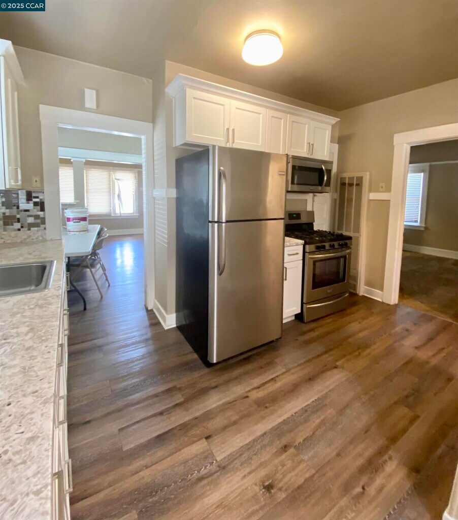 Newly Remodeled Single Story. 2 Bedrooms,1 Bathroom,Approx. 950 Sq. Ft. Family Room. Large Dinning Room. Eat-in-kitchen/Nook. Laundry room with new stack washer & dryer. Newer Flooring. Fresh Paint. Upgraded kitchen. Faux wood blinds. Heat & Air. 1 car garage. Large Fully fenced yard. Great location near schools,parks,restaurants. Close proximity to freeway & BART for easy commute. 2 homes on one lot. Front door is located on 1112 Black Diamond. Apply with RentSpree