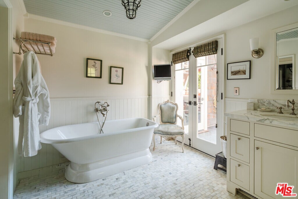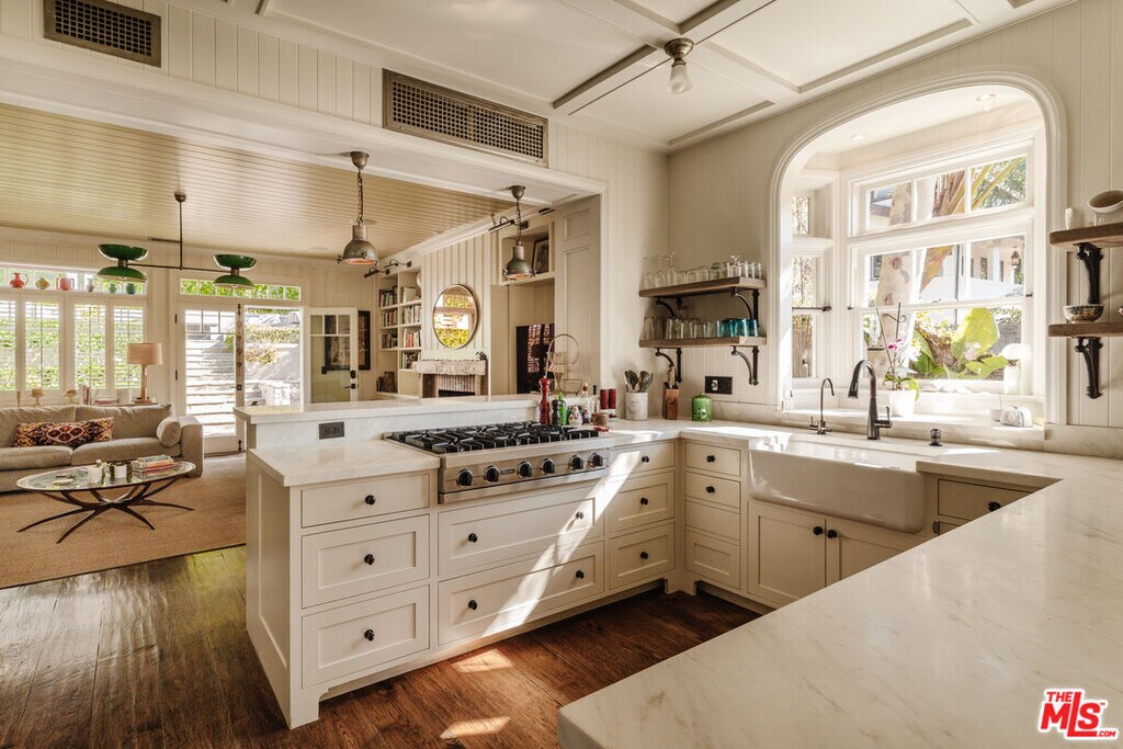 Welcome to Santa Monica Canyon and this East Hampton inspired architectural residence, built to 1930s specifications and finished with authentic vintage fixtures. This stone-and-shingle home, designed by Tim Barber, AIA, offers ocean views from two private primary-suite decks and is flooded with natural light throughout. With a relaxed Shutters-at-the-Beach vibe, the home features a custom kitchen, an open and flowing floor plan, two fireplaces, and parking for up to five cars. Ideally located near the beach, Canyon schools, and local restaurants. Available February 7, 2026. MLS# 25626855