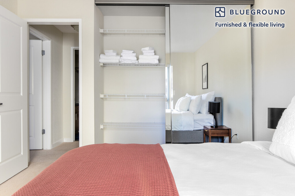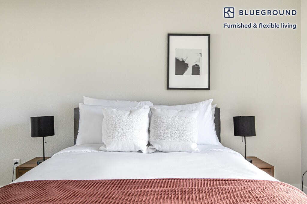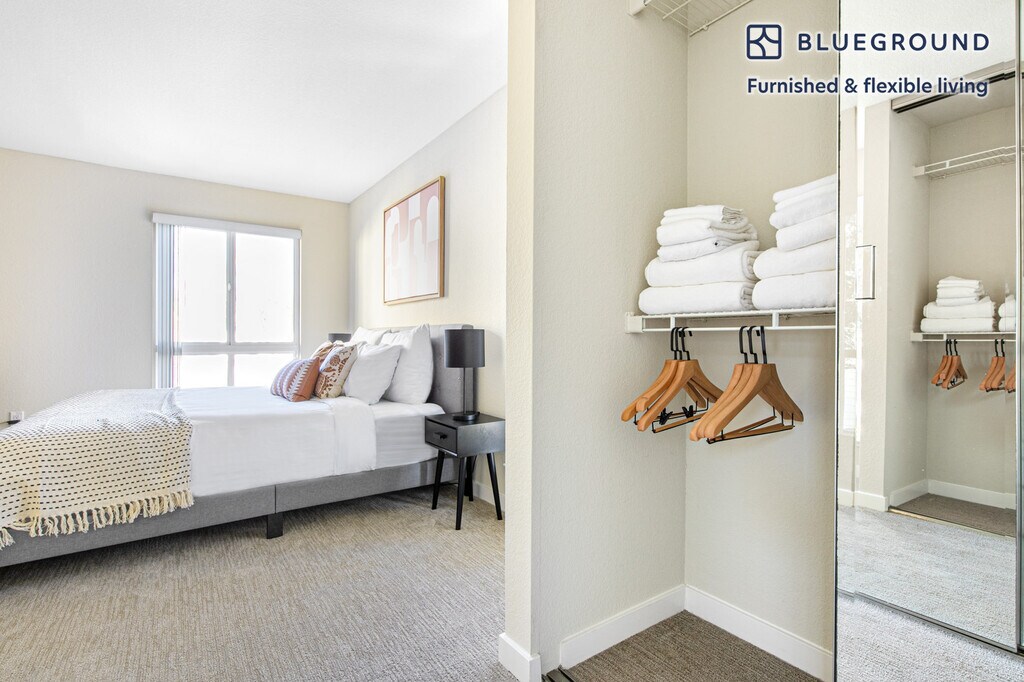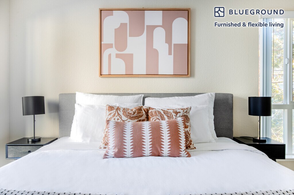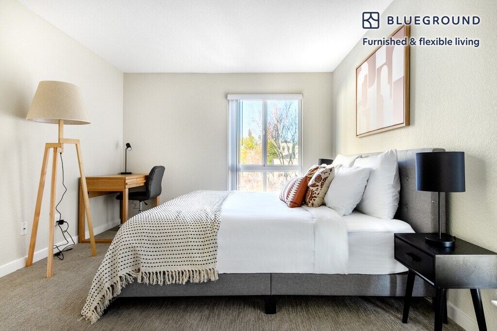 Feel at home wherever you choose to live with Blueground. You’ll love this pretty Rivermark of Santa Clara furnished two bedroom apartment with its modern decor, fully equipped kitchen, and roomy living room. Ideally located, you’re close to all the best that Santa Clara has to offer! (ID #SFO446) The advertised rate of $3,310/month is the lowest available price, based on a 12 month(s) stay with a move-in date of May 17, 2026. Rates vary depending on the duration of stay, season, and other parameters. For exact pricing and additional pricing components, please visit our website and enter your desired move-in and move-out dates. The rate is applicable when billed upfront; it can be higher if billed in multiple payments. Brokers are welcome to reach out. Were you looking for an unfurnished lease? Try Blueground instead and upgrade from unfurnished to furnished living: - Furnished at rates comparable to unfurnished - No setup or furniture costs - save thousands - Move-in ready - save time, just bring your suitcase Designed with you in mind Thoughtfully designed with bespoke finishes, modern furnishings, and a fully equipped kitchen, you’ll enjoy that “I’m home” feeling with this Blueground apartment. Whether you’re lounging in your cozy living room streaming the latest and greatest entertainment on the smart TV or premium wireless speaker, or getting some well-earned rest on the superior quality mattress with luxury linens, you’ll fall in love with everything this Rivermark of Santa Clara apartment has to offer. This apartment also offers in-apartment laundry. Sleeping arrangements King Bed, 70.8in/180cm Queen Bed, 63in/160cm Amenities Building amenities unique to this two bedroom apartment include an on-site: - Basketball Court - BBQ Area - Dryer - Swimming pool - Washing machine - Parking - Pets allowed - Playground Arrival and ongoing support The entire apartment is yours to enjoy! Throughout your stay, you’ll have access to our Client Experience team through the Blueground App. You can schedule additional cleanings, submit maintenance requests, and view our neighborhood recommendations with just a few taps. We’ll share all details upon confirmation of your stay. Other things to note Building amenities may have an extra cost. This Blueground apartment has flexible lease options, allowing you to book it for one month, a year, or more. Pets are welcome, though weight limits and breed restrictions apply and may incur fees. Parking is offered based on availability and is subject to a fee. Please keep in mind that this is a walk up building. We take great pride in ensuring every photo displayed is shot in our own units with our actual furnishings. That said, we regularly refresh our decor and furniture arrangement, which may differ from what’s pictured. [SI]