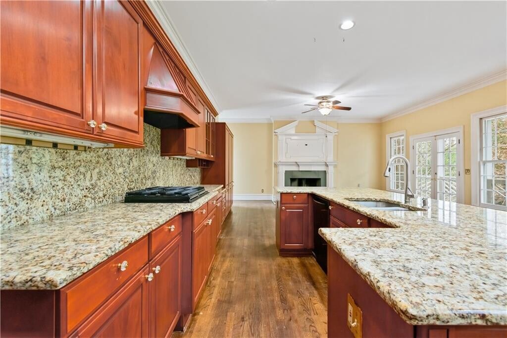 Traditional 5-bedroom,5.5-bath home located in the heart of Buckhead. This is a large residence with a functional layout,defined living spaces,and substantial square footage throughout. The main level features a formal foyer with a living room on one side and a separate dining room on the other. The gourmet kitchen includes a gas range,built-in oven and microwave,oversized island with touchless faucet and additional storage,conveniently designed built-in pantry storage,coffee bar,and dry bar. It opens to a spacious family room with fireplace. High ceilings and hardwood floors run throughout the home. A powder room is also located on the main level. Upstairs includes three bedrooms,each with its own private bathroom. The primary suite offers dual walk-in closets,double vanities,soaking tub,and steam shower. A full laundry room with washer,dryer,and utility sink is conveniently located on this level. The terrace level is fully finished and designed for entertaining. It includes a full bar with dishwasher and ice maker,wine cellar,large open living area,additional storage space,and two additional bedrooms — including a private in-law suite with separate entrance and balcony. One bedroom is integrated into a library space and includes a built-in Murphy bed and concealed full bathroom. The home features four fireplaces (living room,family room,terrace level,and in-law suite),a two-car garage,and a looped driveway. Outdoor spaces include multiple balconies overlooking a private backyard with creek and greenery. Located minutes from Buckhead’s business district,shopping,restaurants,major highways,and private schools including Pace Academy,The Lovett School,and Westminster. This property offers space,privacy,and flexibility in one of Atlanta’s most established neighborhoods. All applicants must complete a rental application,provide verifiable income (minimum 3x monthly rent),and pass reference and background checks. Security deposit and first month’s rent due prior to move-in. MLS ID 7722308