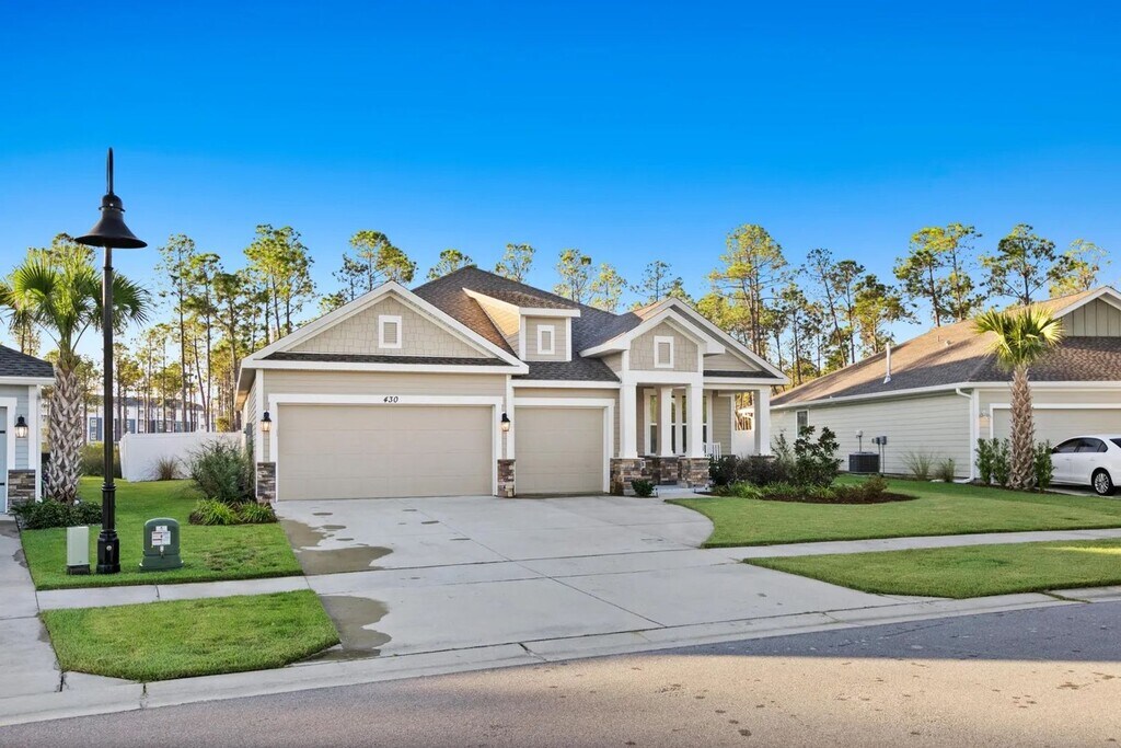 Location, location AND 3 car garage! This home is located on a quiet cul-de-sac a few short blocks to Breakfast Point Academy. One level living offering approximately 2,375 square feet, 4 bedrooms, 3 baths and ample storage. Upgrades include; crown molding, window trim package, glass wall in master shower, countertop and luxury plank vinyl flooring upgrade throughout. Situated on a large pie-shaped lot, the exterior space is built to entertain featuring a 27X10 covered patio, expansive enclosed backyard (with room for a pool) overlooking conservation preserve. Bring the pups! Breakfast Point is centrally located in Panama City Beach close to top-rated schools, great dining, unique boutique shops, nightlife and some of the most challenging golf courses the gulf coast has to offer. This locals community is located just 2 miles from the Gulf of Mexico and is surrounded by conservation preserve offering quick access to forest, bike paths and trails for the nature lover! The community location also provides effortless access to Northwest Florida Beaches International Airport for the traveling telecommuter.