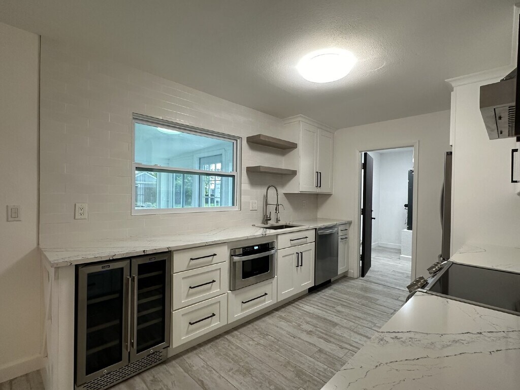 Welcome to this beautifully updated 2 bedroom, 2 bathroom home, offering a blend of modern amenities and classic charm. The house features a partially fenced backyard and ceramic tile flooring throughout, ensuring both comfort and style. The kitchen is a chef’s dream with granite countertops, shaker style cabinets, and high-end stainless steel appliances, including a wine fridge. The dining room boasts a built-in hutch, perfect for displaying your favorite china or collectibles. The master bedroom is designed with convenience in mind, featuring built-in nightstands and an ensuite bathroom with an updated walk-in shower. The guest bathroom also showcases an updated tub/shower combination. Additional features include a tankless hot water heater, a laundry room with washer/dryer hookups, and a one-car garage. The guest bedroom is equipped with a built-in desk for two, ideal for working from home or study space. Step outside to enjoy the firepit in the backyard, perfect for cozy evenings, or relax in the enclosed Florida room. This home allows for one pet up to 15 lbs, with an additional pet deposit and pet fee due. Don’t miss the chance to make this stunning, fully updated home yours! All Florida Suncoast residents are enrolled in the Resident Benefits Package (RBP) for $65/month which includes liability insurance, credit building to help boost the resident's credit score with timely rent payments, up to $1M Identity Theft Protection, HVAC air filter delivery (for applicable properties), move-in concierge service making utility connection and home service setup a breeze during your move-in, our best-in-class resident rewards program, on-demand pest control, and much more! More details upon application.