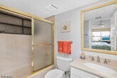 Enjoy the small quiet complex of just 12-owners,large community pool,walking distance to Publix (soon to open),Walgreens,Venetian Village shops,restaurants and the Private Park Shore Beach access. This 1st floor condo is tastefully Updated with comfortable furnishings,granite kitchen,stainless appliances and open floor plan. Living room has large window for natural light,as well as all the other rooms. Lush landscaping views too. The den area has sliding doors and electric hurricane shutters. The main bedroom offers ensuite bathroom and large wall to wall closet. Guest bedroom is convenient to guest bathroom with shower and separate laundry room. Walk out to the community pool with grill and ample seating. Carport,vehicle car wash area and plenty of parking for your guests.