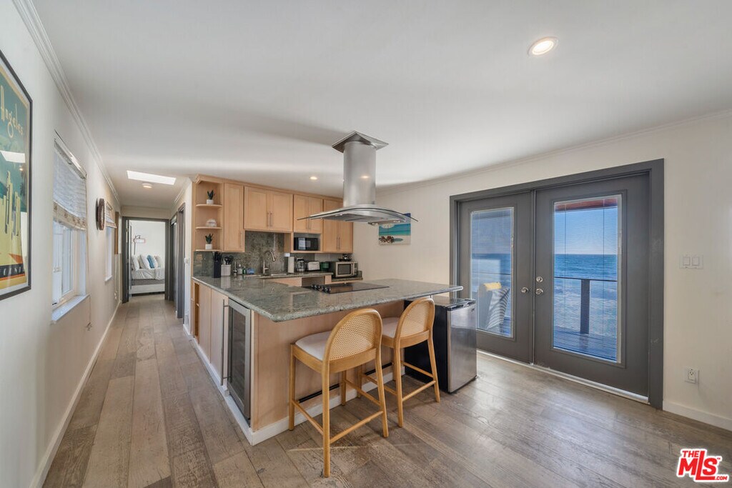 Experience the ultimate oceanfront lifestyle in this absolutely charming coastal retreat, located just past County Line on 60 feet of private, quiet sandy beach. This beautifully remodeled 1-bedroom, 1-bath home offers breathtaking panoramic ocean views and the soothing sound of waves from every room.Step through French doors that open directly to the beach and an expansive teakwood deck perfect for morning coffee, sunset dining, or watching dolphins and seals glide by. The open-concept kitchen features new high-end appliances, custom cabinetry, and modern fixtures. Throughout the home, French oak floors and natural light create a warm, inviting atmosphere.The spa-inspired bathroom boasts a marble shower and large porcelain sink, while the serene primary bedroom offers sunrise views you'll never forget. Ideal for surfers, this stretch of coastline offers one of the best swells in the country just steps from your front door.Whether you're seeking a tranquil escape or an adventurous oceanfront haven, this Malibu-adjacent beach paradise delivers the quintessential California lifestyle. MLS# 25607631