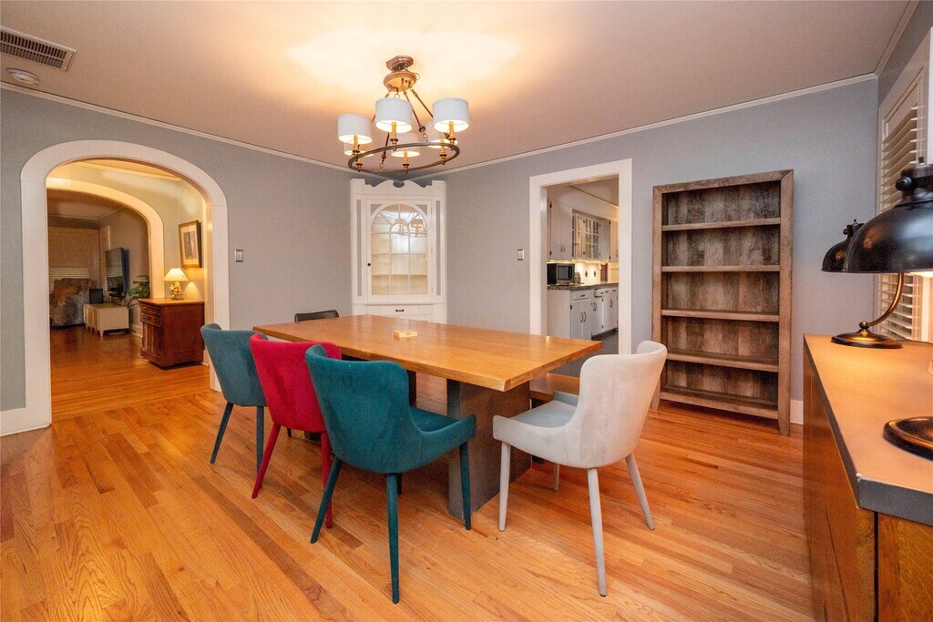 Officially a 3-bedroom,3.5-bath,but with two additional rooms currently used as bedrooms and a garage conversion that includes an office,kitchenette,and half bathroom,there's no shortage of space or flexibility here. Whether you need room for guests,work-from-home space,or a multi-generational setup,this home can handle it. Inside,you'll find a formal dining room,a large eat-in kitchen with tons of space and a walk-in pantry,and a mix of beautiful vintage details (especially in the hall bath) paired with a fully updated primary bathroom that brings everything into the modern day. Washer and dryer are included and conveniently tucked into the hall closet. Outside is just as good — gorgeous front and back porches,a huge fenced backyard,and parking galore. You've got a driveway plus additional private parking off the alley,which is a rare win,especially on a corner lot. The home can be fully furnished or empty — your choice. MLS# 31773252