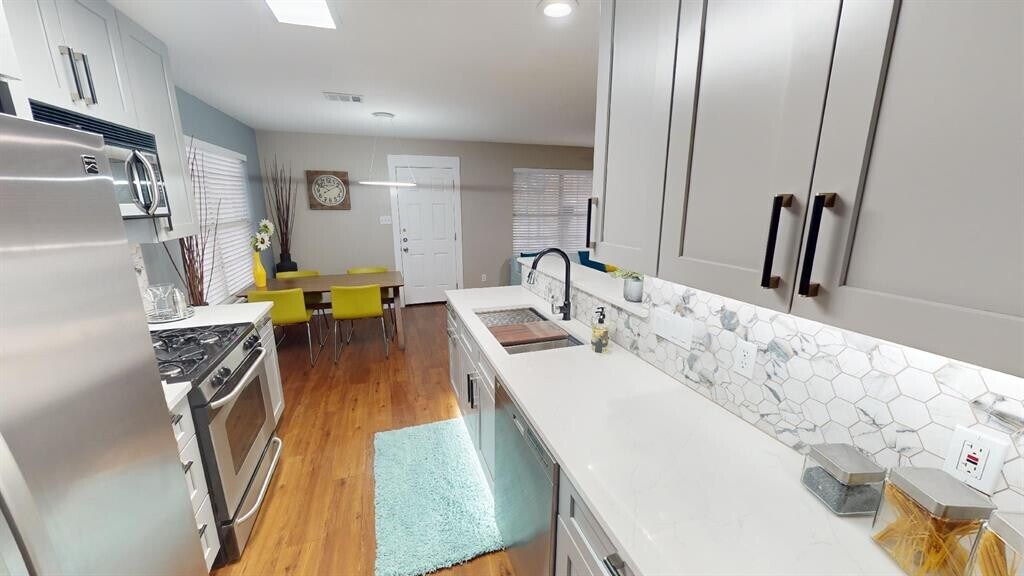 Renovated 3-Bedroom 2.5 baths, 1 car-garage. Duplex with Private Turf Yard in South Austin (78745) Lease: Prefers 12-month+ - Available: Anytime Property Details Layout: 2-story duplex, 1,340 sq ft Bedrooms/Bathrooms: 3 bedrooms (all upstairs), 2.5 baths Parking: 1-car garage (recently renovated) Yard: Spacious, fenced backyard with low-maintenance Astroturf—ideal for lounging, play, entertaining, and pets Interior Features & Upgrades Thoroughly renovated interior, including the kitchen, both upstairs baths, and most of the home stainless-steel kitchen suite: gas stove, microwave with exhaust, dishwasher, fridge Washer/dryer negotiable Upgraded flooring, lighting, ceiling fans, bathrooms, kitchen, and garage No smoking allowed; pets negotiable Water included; Google Fiber available; tenant pays all other utilities Location Highlights Nestled in the desirable South Manchaca/Westgate area, this home blends suburban charm with urban convenience: Dining & Coffee: Walking distance to Radio Coffee & Beer Healthcare: Just a few blocks from St. David’s South Austin Hospital Groceries & Shopping: Near Sunset Valley Marketfair & Central Market; quick access to South Lamar, St. Elmo, and South Congress vibrant business corridor Accessibility: Minutes to Zilker Park, Town Lake, Downtown Austin; easy access to Mopac, I-35, Hwy 71/TX-71 Lease Summary Lease term: Preferably 12+ months No smoking Pets negotiable water included; tenant responsible for electricity, gas, internet, trash, etc. Modern, move-in-ready, and thoughtfully updated throughout, this duplex offers the perfect blend of comfort, convenience, and community. Whether you're enjoying the quiet turf yard, cooking with upgraded stainless appliances, or walking to your nearby favorites, this home gives you the best of South Austin living.
