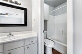Welcome to a very convenient and quiet 2-bed, 2-bath, first floor condo a minute from The Domain! This unit has a large primary bedroom with ceiling fan and attached bathroom with a walk-in closet. As well as a guest bedroom and full bathroom. The kitchen has electric appliances, including a refrigerator, a pantry, and laundry room with Washer/Dryer hookups. The home has a covered back porch, private yard, and storage closet in the back. Two included parking spaces. Be bike-able to The Domain, featuring dozens of shops, restaurants, and entertainment. Easy access to Mopac to travel to Downtown (15 minutes away) or South Austin.