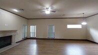 Large home at affordable rent with 3 bed+ study or 4 bedroom and game room,large living,2 dining areas and 2-car garage. The living room features a fireplace and is open to the kitchen and dining area. The kitchen has two ovens and plenty of cabinets,a pantry. The house includes a storm shelter in the garage. Gated community with playground. House close to school,freeways,churches and shopping.