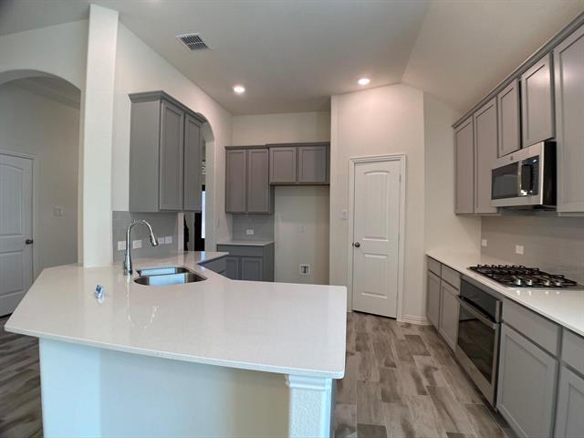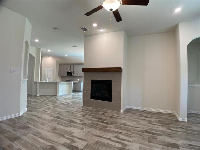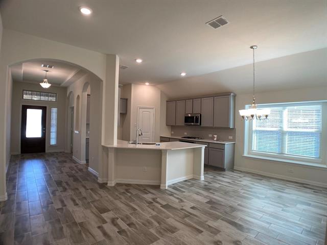 Barely lived in, this Lennar's 1 story Onyx plan with brick & stone elevation has 3 car garage on interior 60ft site with generous backyard. Perfect for new families with small kids that want to live in one floor or downsizers. Offers 3 beds, 2 bath, study, breakfast nook. Kitchen with gray cabinets, white Silestone & stainless steel built-in cooktop & oven. Tile plank that looks like hardwood in entry, family, kitchen, breakfast & hallways. Fireplace, covered patio, gas stub at patio, blinds! Prosper ISD & Prosper physical address along DNT's Golden Corridor! Energy saving features incl. programmable T Stat, radiant barrier & 16 SEER HVAC WIFI. Certified Connected Home. Prosper ISD. Pls check school district for school boundaries' changes coming up in the summer of 2025. Don't miss it!