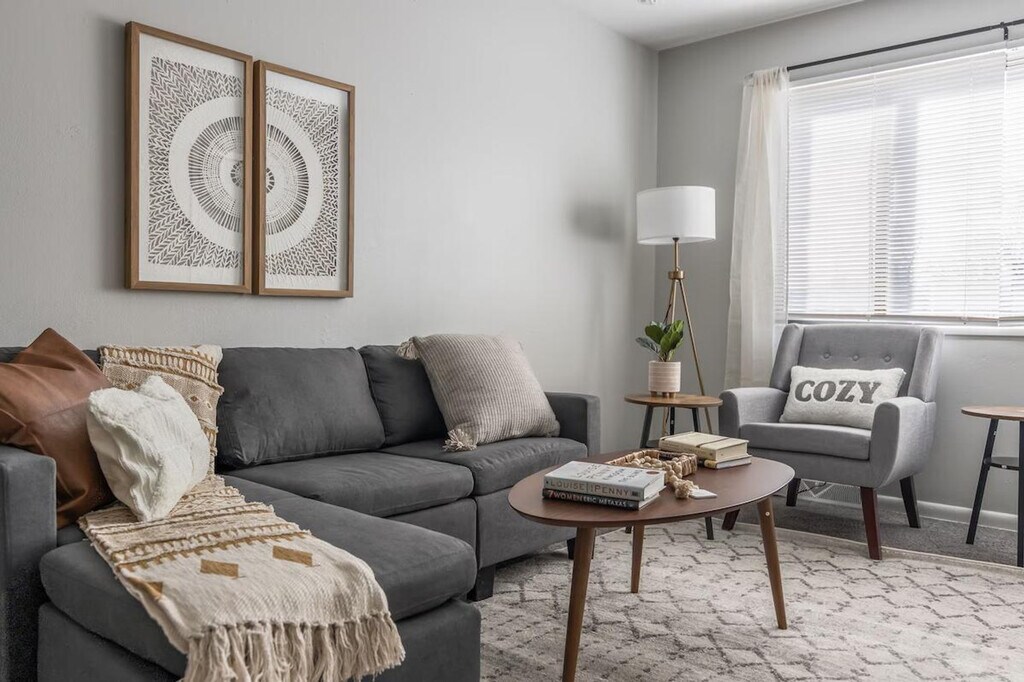 Feel at home in this inviting 2-bedroom haven, located just minutes from the airport and downtown. Freshly renovated and decorated, this apartment features a new kitchen and bathroom. Relax on the plush sofa and stream your favorite shows. Enjoy the convenience of a garage. This apartment promises to meet all your needs in KC. This apartment is insurance-ready and ALE-approved. Includes a dedicated workspace with blazing fast internet. [SI]